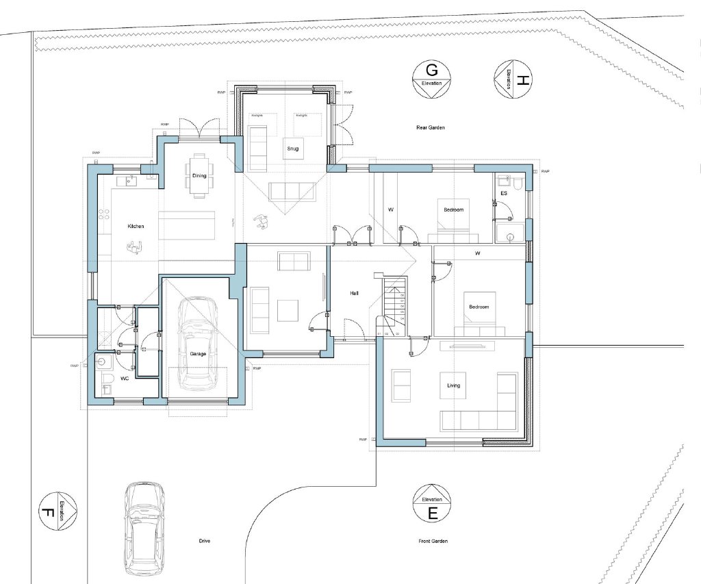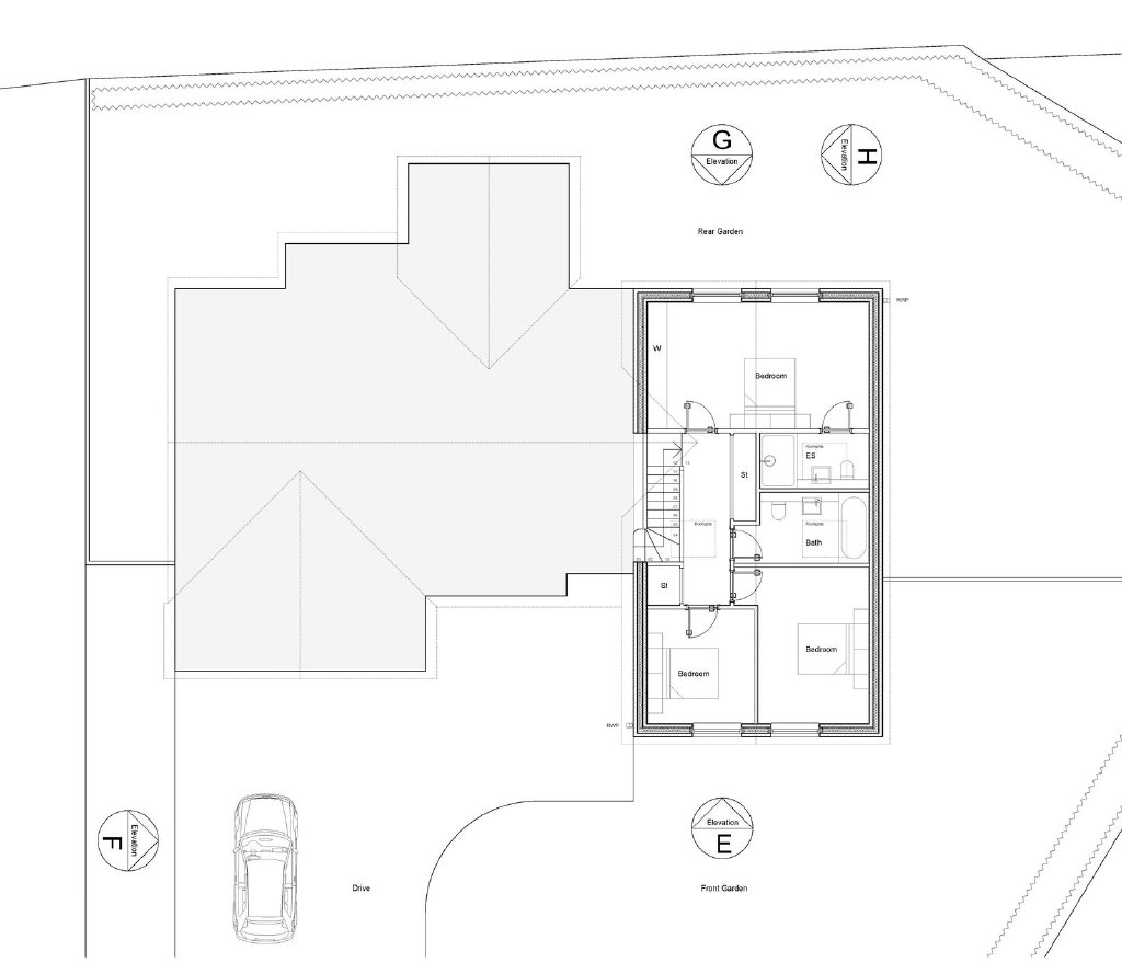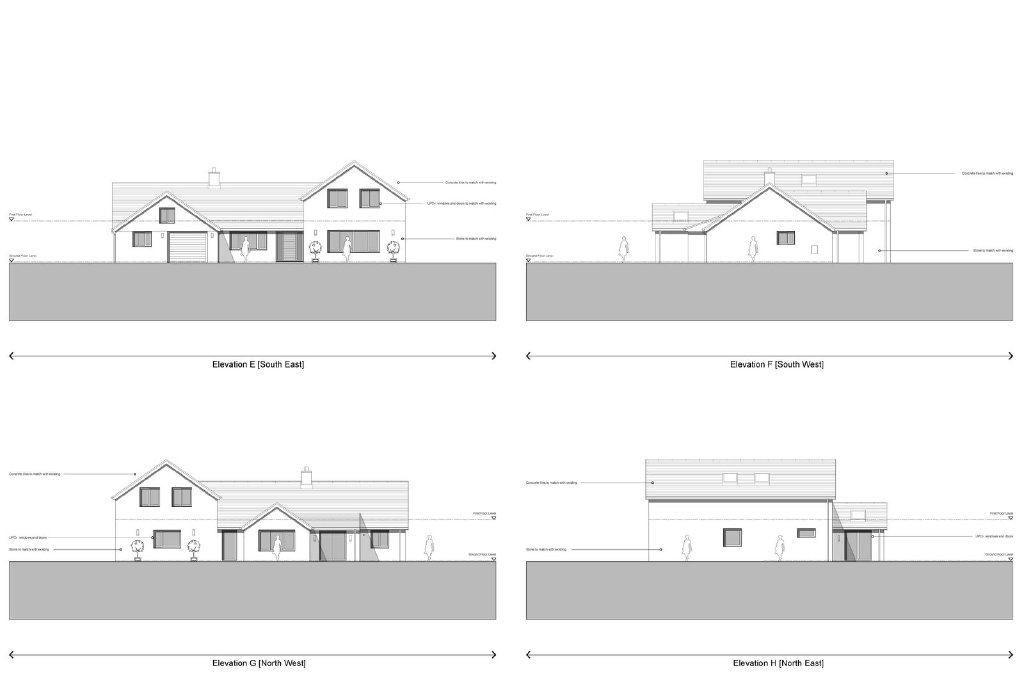 Planning permission has been granted for the removal of the garden room to be replaced with a single storey rear extension, and the erection of a second storey front extension with enlarged gable elevation to create first floor accommodation. Planning application number 2024/62/93349/E