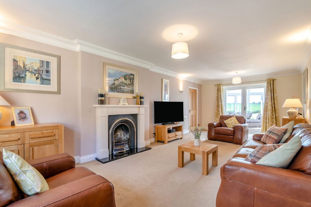 The lounge offers generous accommodation, has a bow window to the front overlooking the garden, internal twin doors opening directly into the garden room at the rear of the property, capturing a glimpse of open countryside beyond and ensuring excellent levels of natural light into the room which has a feature fireplace to the chimney breast with a cast-iron inset, limestone surround, and granite hearth, all home to an inset living flame gas fire. The adjoining garden room has windows to three aspects, all capturing amazing views of the surrounding countryside, French doors opening onto the garden Terrace.