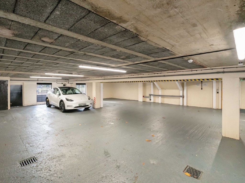 Secure underground covered parking for one vehicle with privately owned EV charger, two visitor spaces and three non-allocated rear outside spaces.