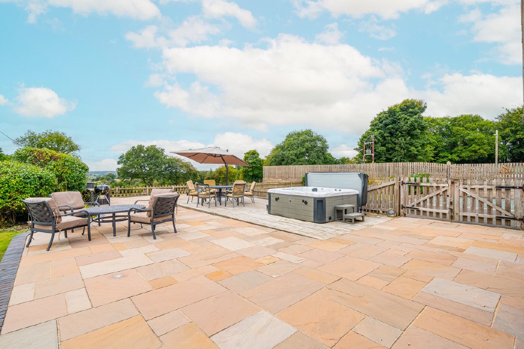 The gardens at Brow Nook Farm have been meticulously designed for year-round enjoyment. Meandering pathways lead through manicured lawns, herbaceous borders, and sunny pockets for relaxation. A gazebo and hot tub area provide the perfect setting for alfresco gatherings, while stone walls and established hedging ensure privacy. The triple garage and driveway accommodate multiple vehicles, and agricultural buildings with solar panels and battery packs add both utility and sustainability. Equestrian paddocks are securely fenced and offer direct access to nearby bridleways, blending lifestyle with functionality.