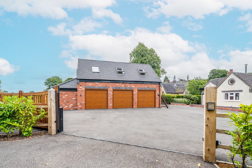 Brick-built, with three electric, remote-controlled garage doors, side access, external metal staircase to the annex above and an electric vehicle charging point. A double door bike and bin storage block completes this practical yet stylish element of the estate.