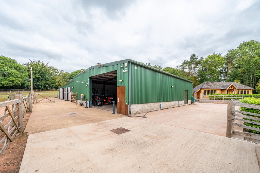 The estate features fully insulated steel agricultural buildings with solar panels and battery packs, a covered carport, and a car wash drainage area. Fully fitted office, storage and stock areas, large workshop and an outstanding gym with heating, air conditioning, TV points and rubber matting. The stables comprise four individual brick-built units with auto water feeders, a large tack room, internal galvanised metal divisions, lighting, and a log store. An all-weather menage completes the exceptional equestrian offering.