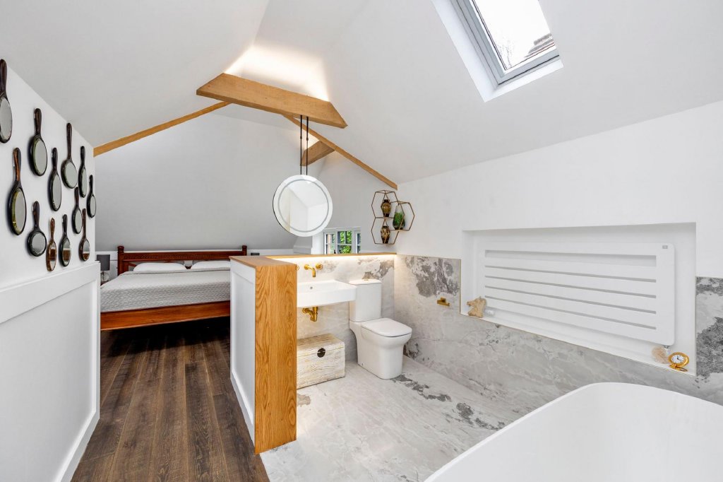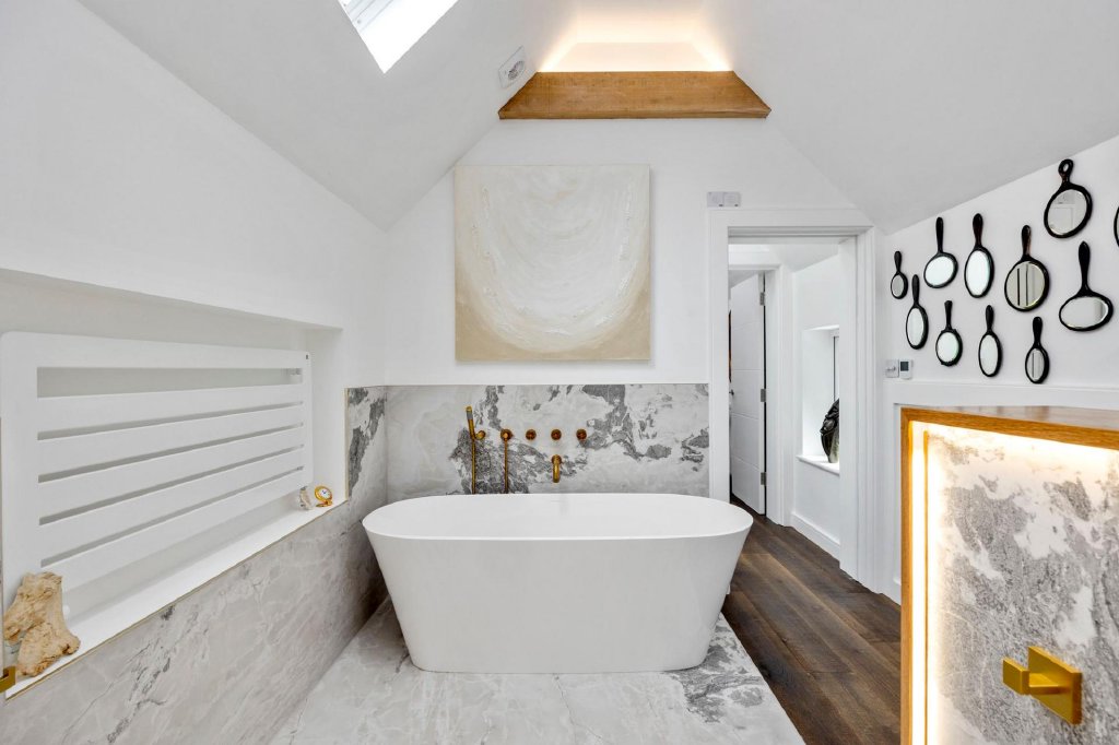 There are two double bedroom suites on the first floor. Each beautifully-presented and fitted with a luxurious en-suite bath or shower room. The main suite has uniquely incorporated the bathroom suite as part of the room offering a sumptuous spa-like feel. Each bathroom has been fitted with underfloor heating.
