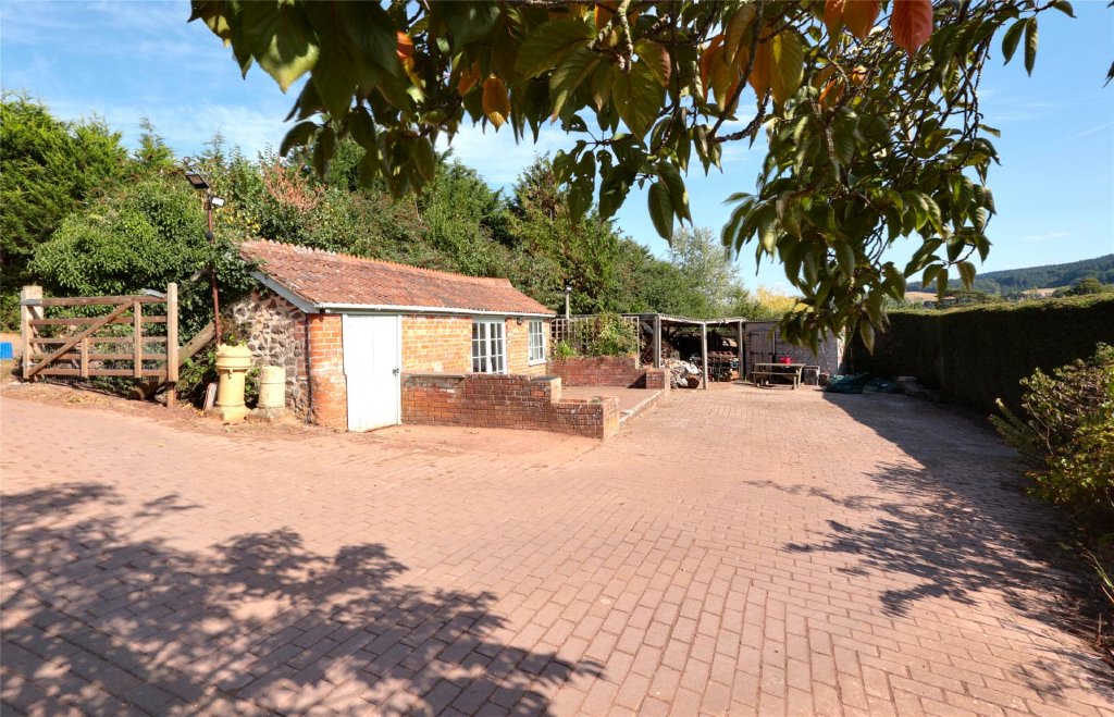 - Large brick paved forecourt, carport and outbuilding