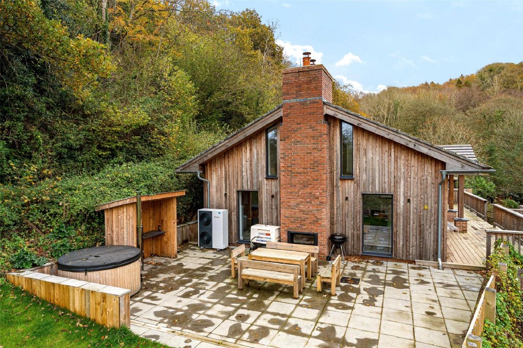 The landscaped gardens sweep down to woodland that provides privacy and an ever-changing backdrop of colour. Wildlife, including deer, are frequent visitors, and the elevated terraces and hot tub offer the perfect vantage point from which to enjoy tranquil sunsets across the valley.
