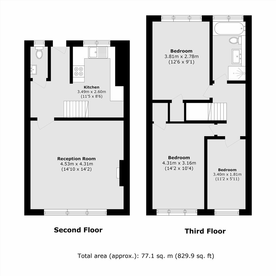 A three bedroom, split level apartment located near Hoxton. The lower level of this flat offers a spacious reception space, with large windows for plenty of natural light, a separate kitchen and a WC. The upper level consists of three good sized bedrooms with plenty of space for storage and a family bathroom.