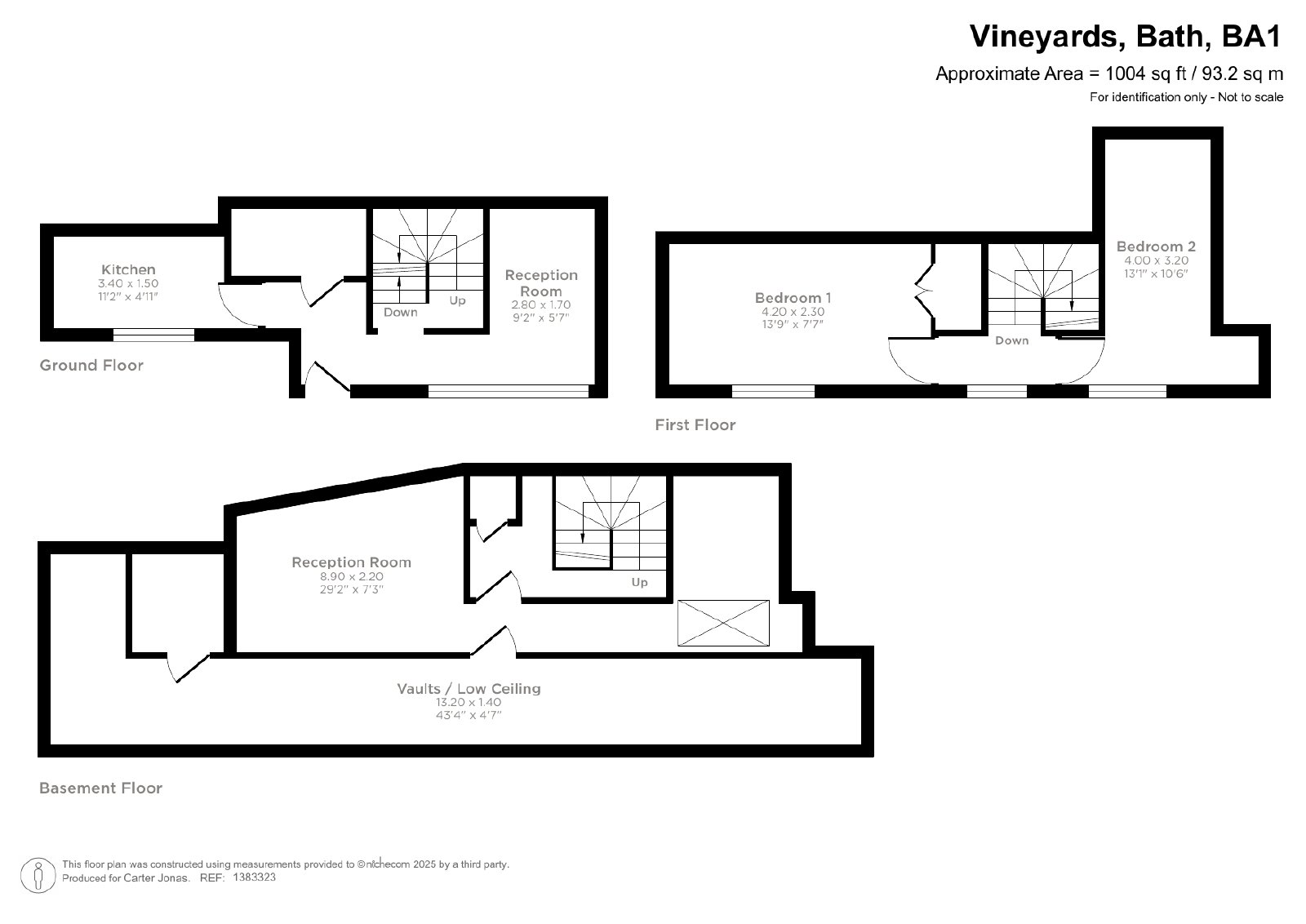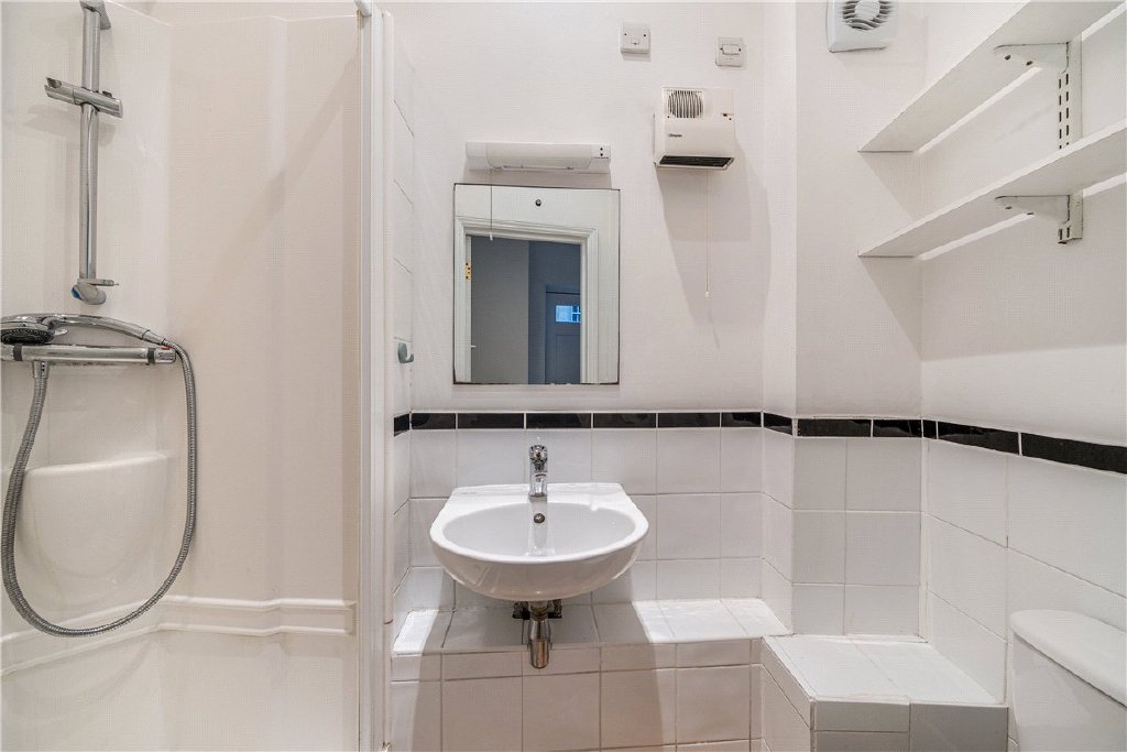 A central staircase leads to the first floor, where there is a double bedroom with built-in storage, as well as a second bedroom. The basement level, accessed on the central staircase, offers two separate reception rooms on either side of the staircase, offering versatile space. There is also ‘The Vault’ which is a low-ceilinged storage area, as well as a WC room within.