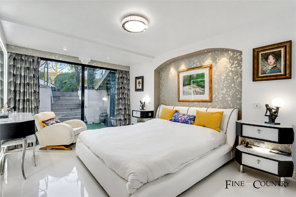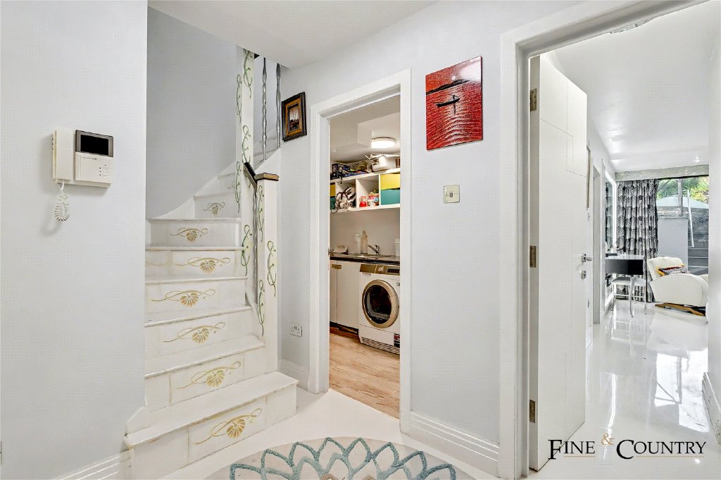 Practical needs are well considered, with a dedicated utility room discreetly positioned off the circulation space, providing laundry facilities and additional storage while preserving the main living areas for uninterrupted use. Together, the lower level combines privacy, functionality, and hotel-style comfort, a rare configuration in a garden flat of this scale.