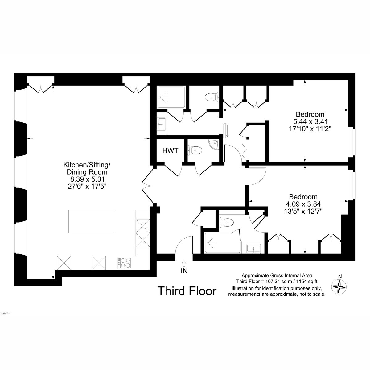 The second bedroom is also a good-sized double, with built-in wardrobes and benefits from its own en-suite bathroom with underfloor heating.