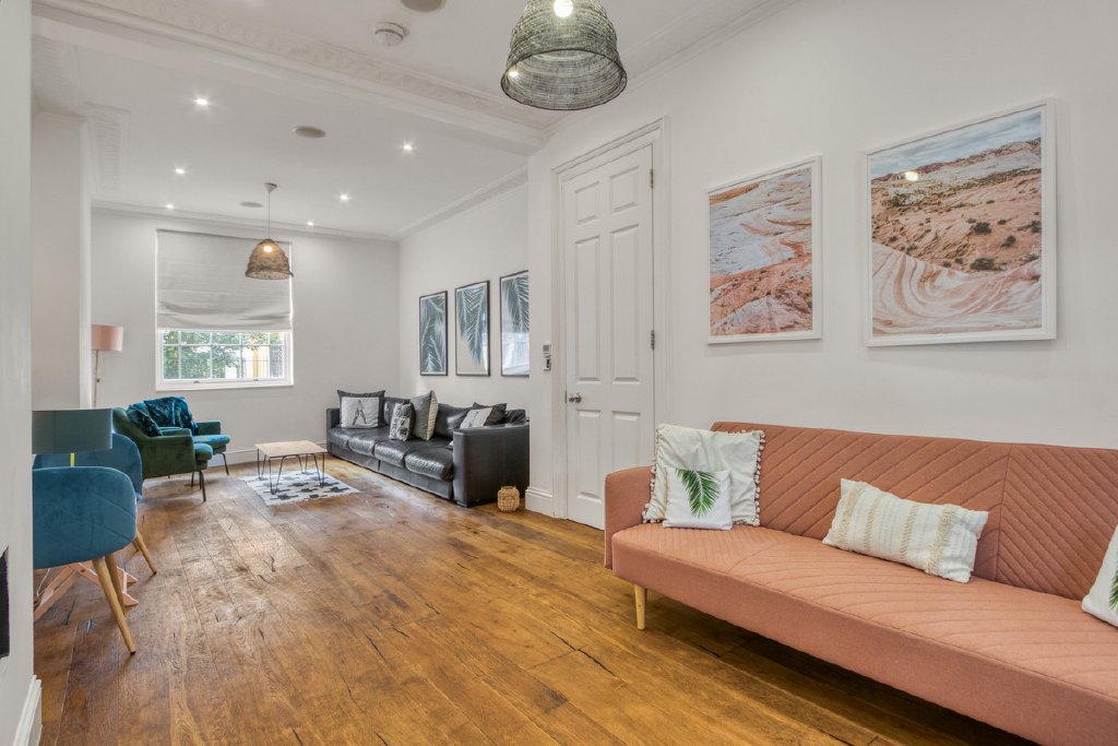 Arranged over five architecturally designed floors and approaching 2,600 sq ft, the property exudes period grandeur and refined modernity in equal measure. The accommodation comprises five generous bedrooms and three luxurious bathrooms, effortlessly catering to both family life and sophisticated entertaining.