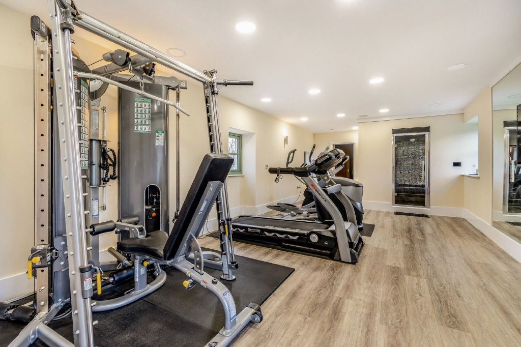 The gymnasium offers versatile accommodation, has windows to front and rear aspects, twin doors opening onto the garden whist incorporating bespoke steam room / sauna.