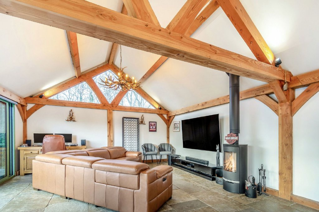 The summer house is a fantastic addition to the property offering accommodation extending to approximately 1000 sqft to include a sitting are / office, games area and bar, a dining area and a W.C. The open plan room displays exposed timbers, has two sets of bi-folding doors and a central door with full height windows on either side of an entrance door. There are 12 solar panels and a generous paved garden terrace.