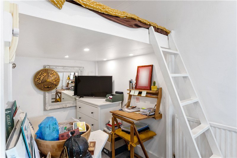 A beautifully presented second-floor studio flat, thoughtfully designed to maximise space and functionality. The property features a well-appointed open-plan kitchen, contemporary shower room, and a cleverly arranged mezzanine sleeping area, complemented by a generous hallway storage cupboard.