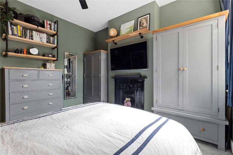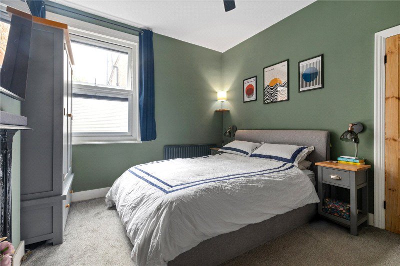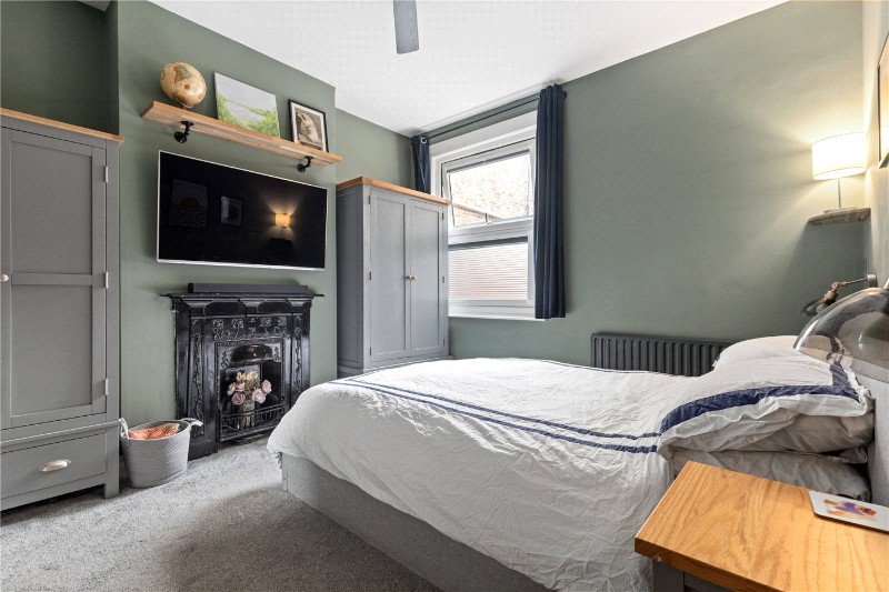 This one-bedroom ground floor garden maisonette offers a bright and welcoming reception room, enhanced by wooden flooring, double-glazed windows with shutters, a feature fireplace, and elegant period cornicing. The spacious double bedroom features a striking feature fireplace, fitted carpet, and tasteful décor, creating a cosy yet elegant retreat. The stylish eat-in kitchen continues the sense of light and space, fitted with contemporary wall and base units, wooden worktops, integrated appliances, and a tiled splashback.