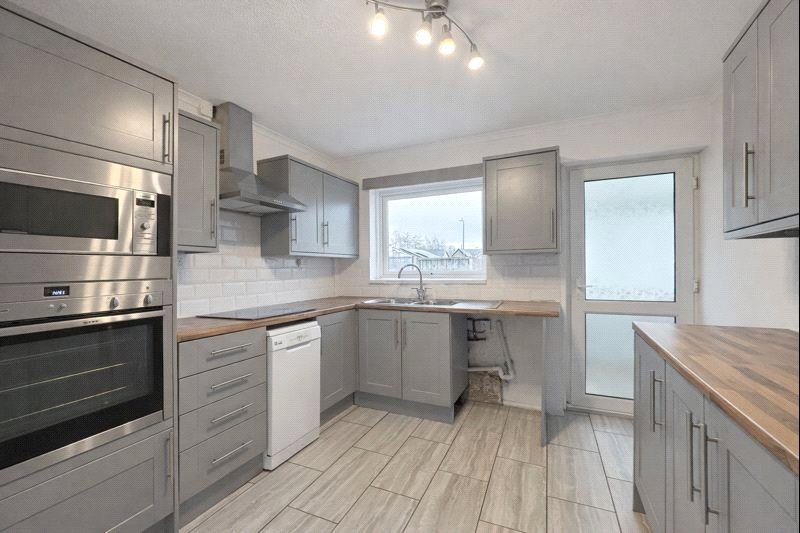 The lounge is a good-sized room with modern flooring, a fireplace and a door opening into the conservatory, which provides additional living space overlooking the rear garden. The kitchen is fitted with modern units and work surfaces, integrated appliances and a door providing access to the Conservatory.