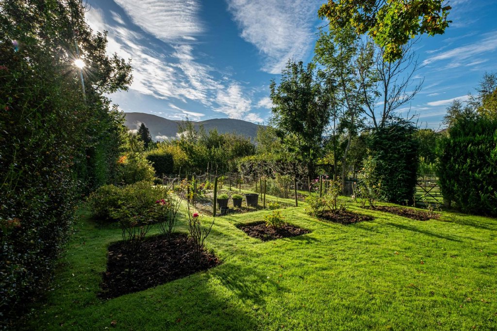 A private garden surrounds the house, featuring mature planting, colourful borders, and an exceptional stone terrace that wraps around the property, capturing the lake views and its southerly aspect. It is a perfect setting for outdoor dining, entertaining, or simply appreciating the tranquillity of this exceptional location. There is also a charming and much loved vegetable garden and orchard.