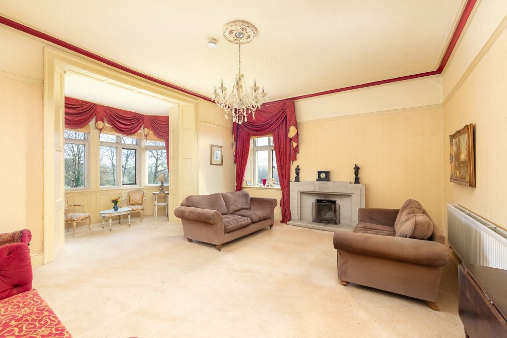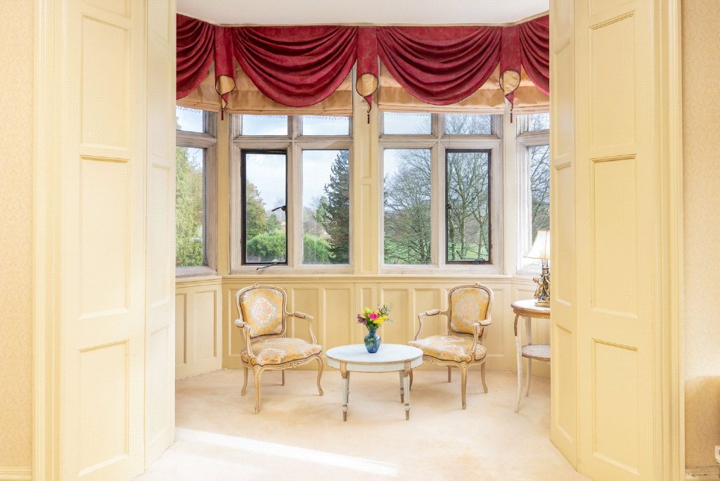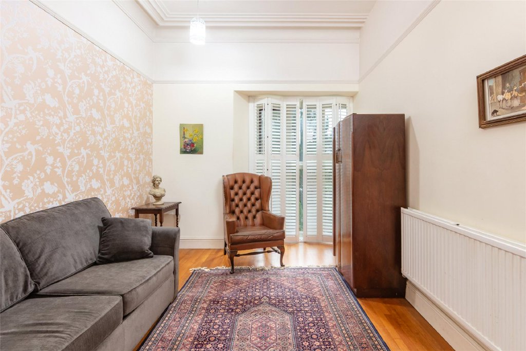 - Elegant first floor sitting room with working fireplace, high ceilings and large bay window