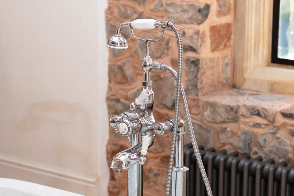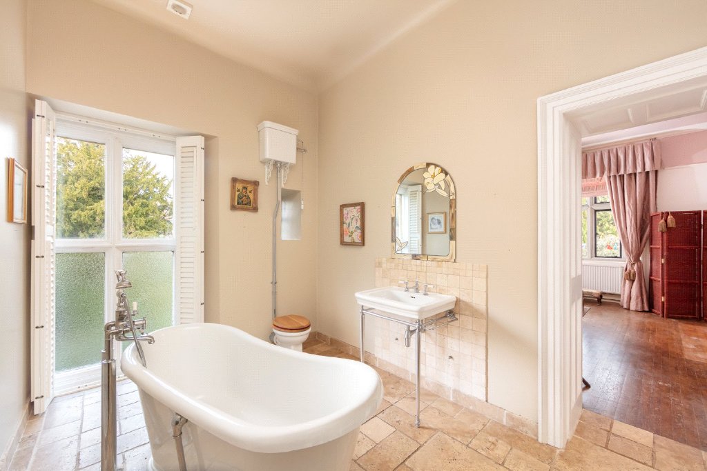 - Superb principal bedroom suite with open plan layout, freestanding roll top bath and countryside views