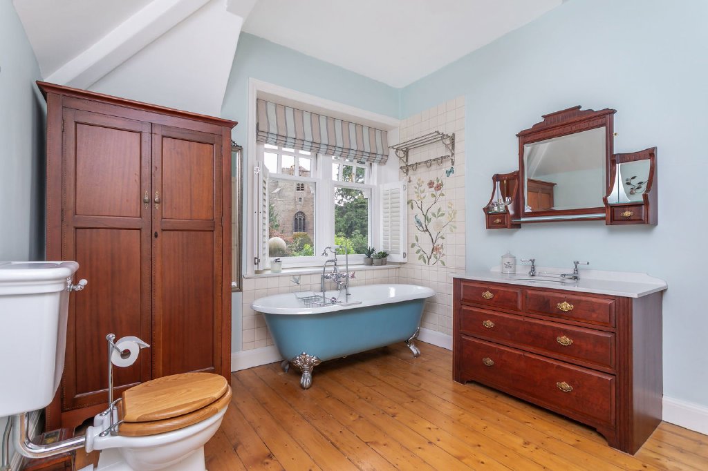 Built in 1911 as the vicarage to the adjacent All Saints church, Rushton House retains much of its period charm, with high ceilings, sash windows, panelled doors, open fireplaces and decorative detailing, while high-quality fittings, a thoughtful extension and many improvements ensure it is ideally suited for contemporary family life. The accommodation starts with an impactful hall and goes on to provide four elegant reception rooms for entertaining alongside cosy family spaces. The well-planned kitchen is finished to an excellent standard with the support of ancillary domestic offices; shelved pantry, utility and a boot room and around a courtyard, stores and an outside WC.