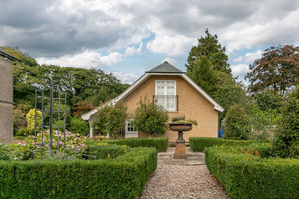 Outside, the approach is through a secure gated entrance to an extensive parking area in front of the detached double garage which boasts the advantage of a selfcontained studio above, perfect for a dependent relative, guests or as a home office or creative space.
