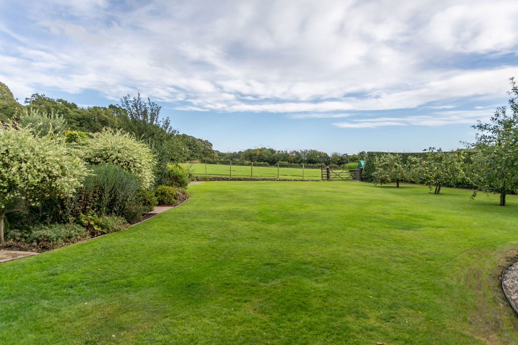 Upon arrival, electric gates open to plentiful gravel parking, the garage and vehicular access into the field (there is also further vehicular access off Delph Lane). Well-tended and comprehensively stocked gardens surround the house and offer privacy and opportunities for relaxation, recreation and growing your own fruit and vegetables.