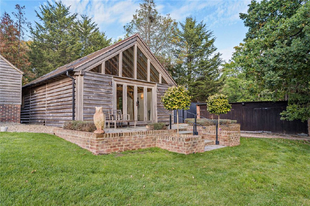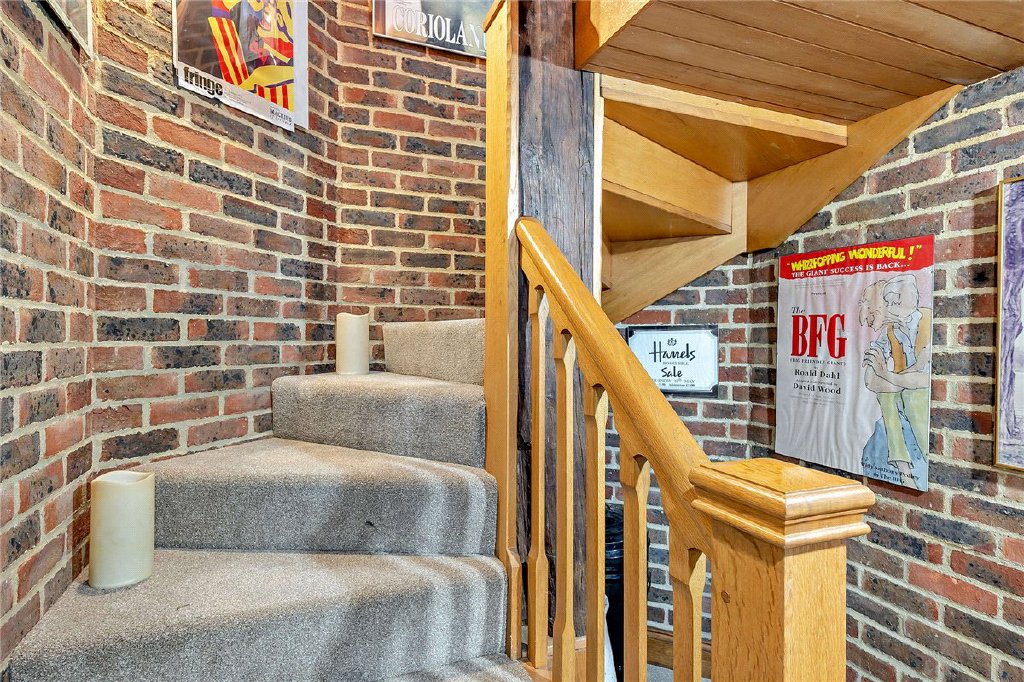 Originally constructed in the 1920s, the home boasts a fascinating provenance as featured in an article in a 1923 issue of Country Life. Its origins lie in an oak barn that was carefully transported from Hertfordshire and reconstructed on the site of Hamels. Following a fire in the late 1970s, the house was sympathetically rebuilt in 1980 by the current owners, incorporating many original features including beams, doors, and the striking fireplace and chimney in the sitting room. Further extensions have been added in recent years, enhancing its scale and functionality.