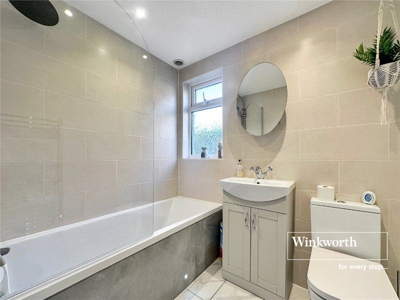 The hallway with fitted seating area and herringbone flooring welcomes you in and leads to the main living space, this area is the real hub of the home with a kitchen that features integrated appliances and a range cooker as well as a breakfast bar for everyday casual dining. This sociable space leads to a dining area for entertaining on more special occasions and a living area with direct access onto a south facing garden! The largest of the bedrooms has built in wardrobes and there are two further good size bedrooms as well as storage via the hallway and a loft space. The modern bathroom features a bath with overhead shower, wc and hand basin.