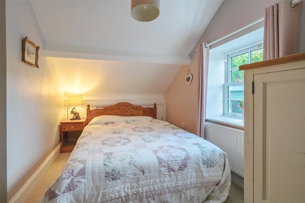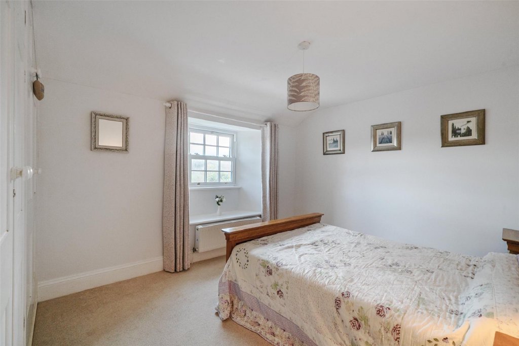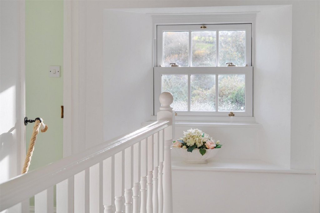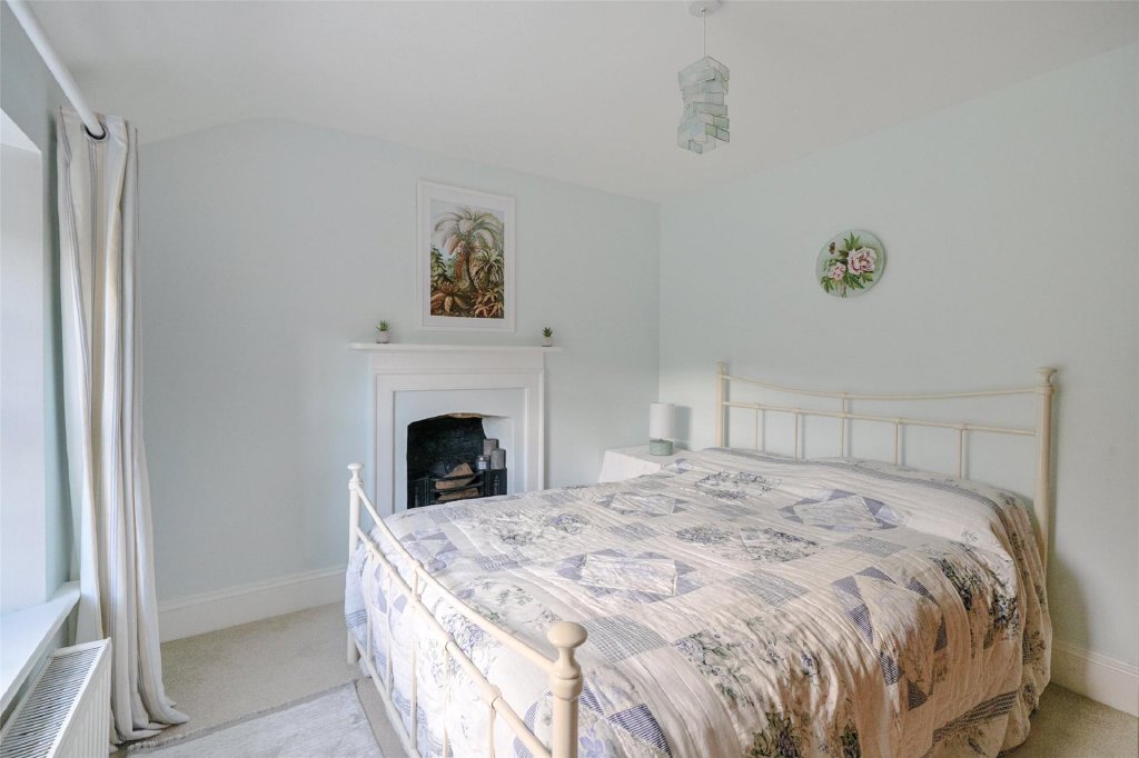 Upstairs, four double bedrooms enjoy lovely views and plenty of natural light. The principal bedroom includes built-in wardrobes, with the remaining rooms offering flexible guest or family accommodation. A well-appointed family bathroom sits centrally, with modern fittings that complement the home’s traditional feel.