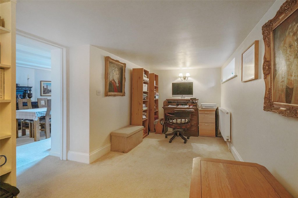 The generously sized dining room offers a more formal space for gatherings, its open fireplace adding a sense of occasion. A study or additional snug sits quietly to one side, making home working or hobbies easy to accommodate without compromising the main living areas.