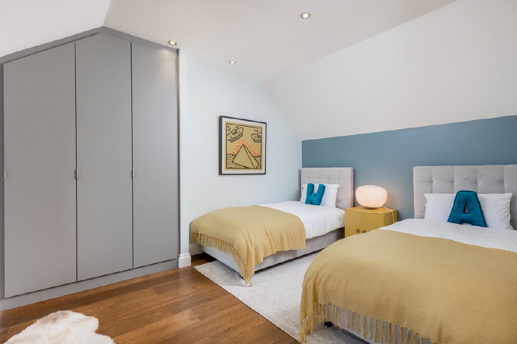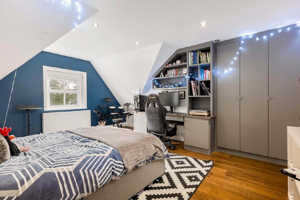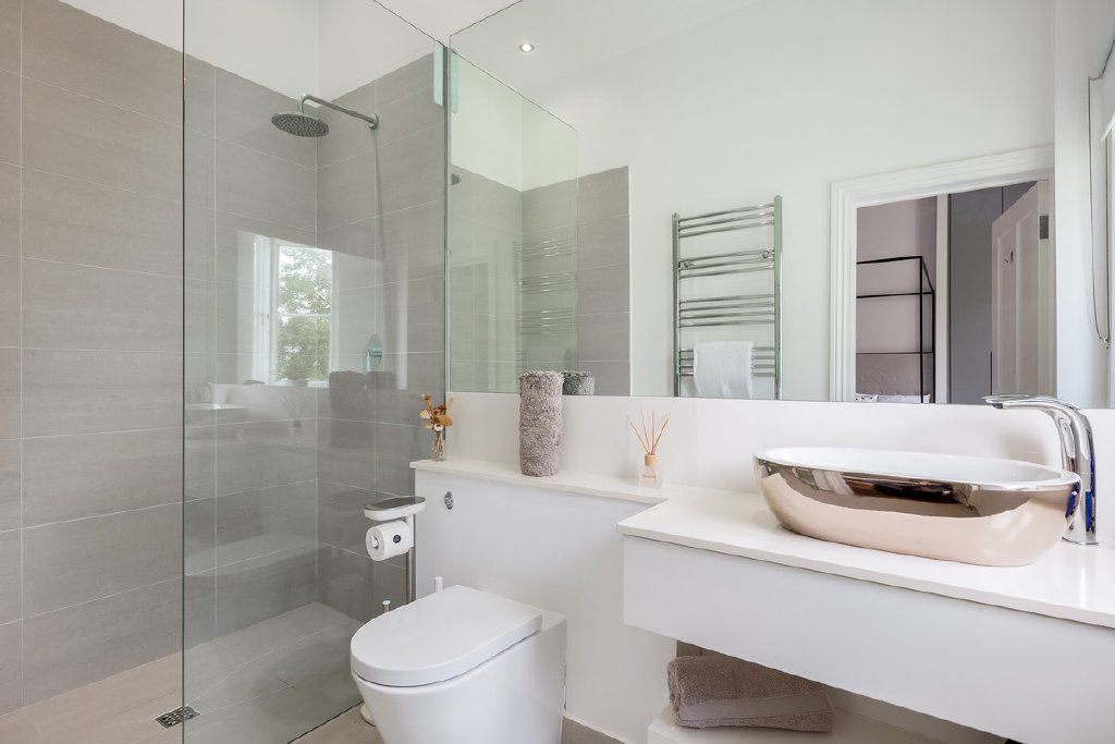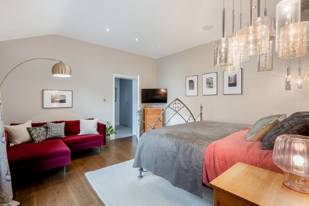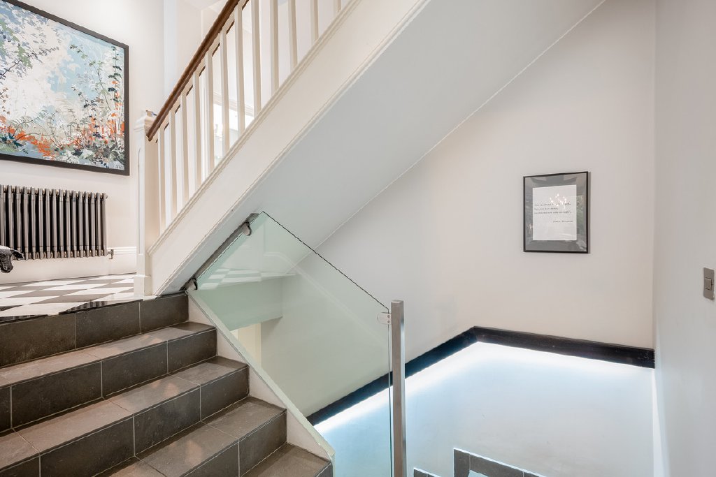 The flexible living accommodation on this level has the potential to be used as a self-contained suite if desired. Both reception rooms/bedrooms are flooded with light from large windows to the front, the larger of the two is currently used as a playroom/cinema room with the other used as a stylish home office with built in storage and recessed shelving.