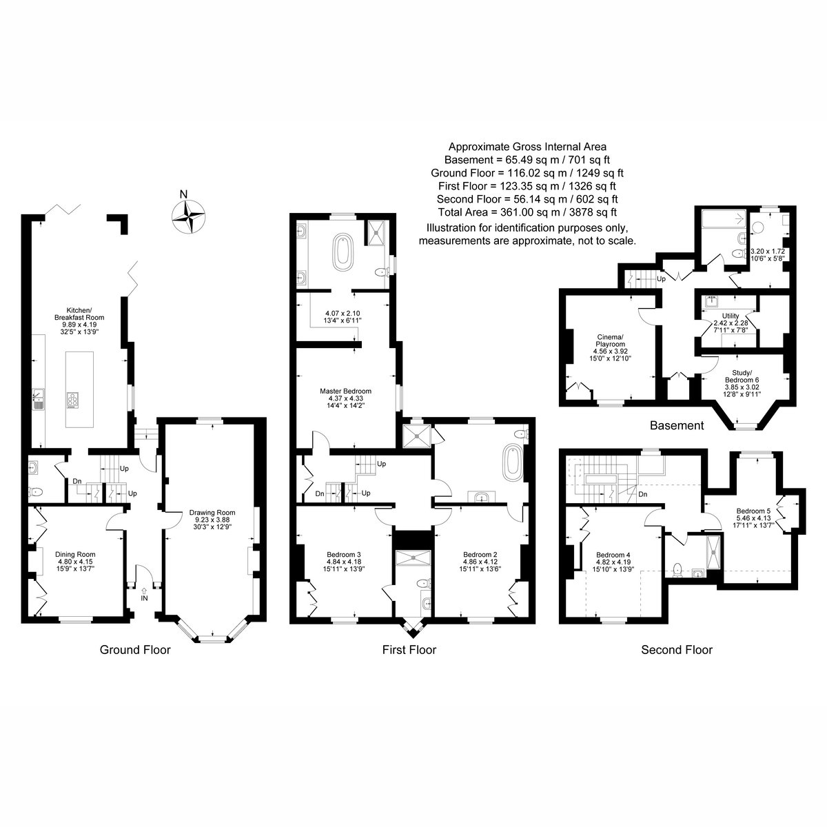 The first floor gives access to the principal bedroom suite, two double bedrooms and a family bathroom.