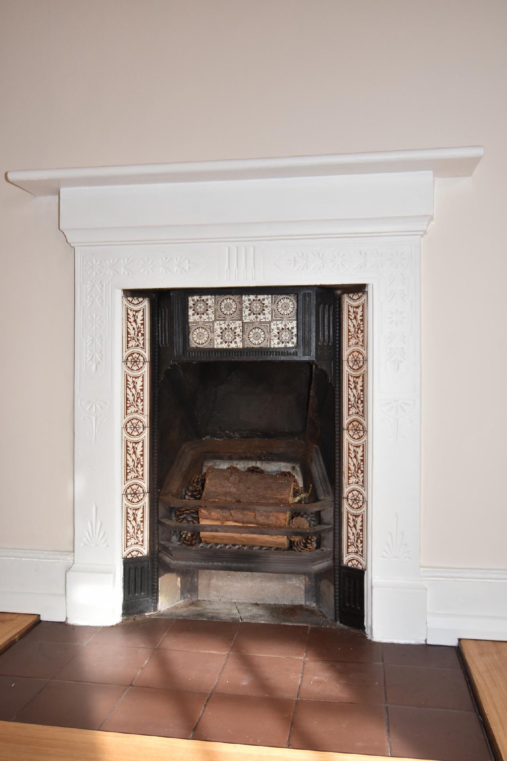Two secondary glazed sash windows to the front aspect, feature fireplace and arched-top recess with double-fronted cupboard and inset glass shelves.