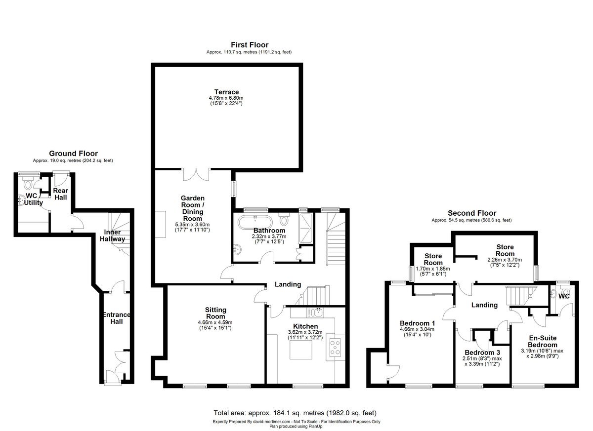 The living area is situated on the first floor comprising: Landing, sitting room (featuring two sash windows to the front aspect, an arched top recess and ornate fireplace) and a dual aspect garden room/dining room presenting two arched top recesses, a feature fireplace, oak flooring and French doors opening to an elevated decked terrace overlooking Elmhurst Park. The modern fitted kitchen is equipped with an extensive range of built in and integral Siemens appliances, quartz work surfaces and a central island offering a breakfast bar and additional storage. The luxurious bathroom offers a slipper bath set within an arched topped recess and a double shower. A further carpeted staircase rises to the second floor where there are two double bedrooms, a single bedroom/study and a box room/loft style storage room. The main double bedroom is equipped with a walk in wardrobe, fitted wardrobes and an ornate feature fireplace. The second double bedroom offers a built in wardrobe and en-suite WC with vanity unit providing built-in storage, and the third bedroom/study has a built in cupboard.