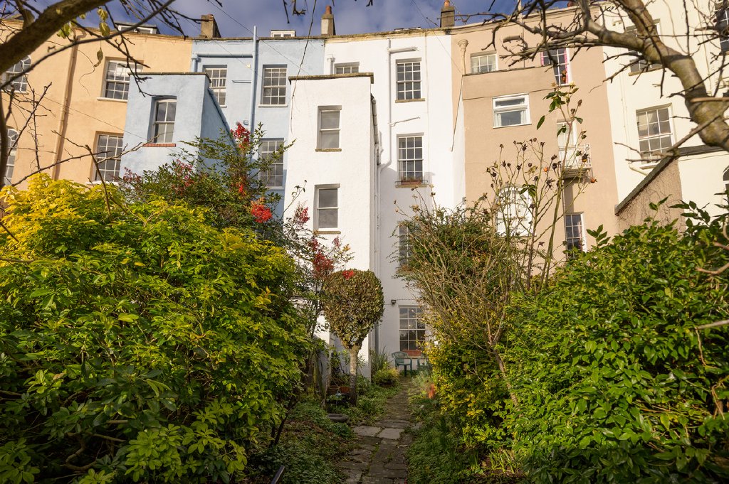 Outside, the rear garden is fully enclosed with high brick walls and a flagstone path this low-maintenance haven with mature shrubs, plants and trees is ideal for al fresco dining. A discreet door access to the rear lane provides an exceptionally rare benefit in Clifton— to the garage and off-street parking.