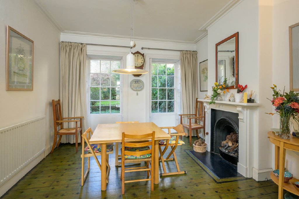 The house retains exquisite period detailing including marble working fireplaces with cast iron grates and slate hearths, floor to ceiling sash windows with working shutters, stripped floorboards, flagstones, and high ceilings with ornate cornicing - all add to the sense of scale and grandeur.