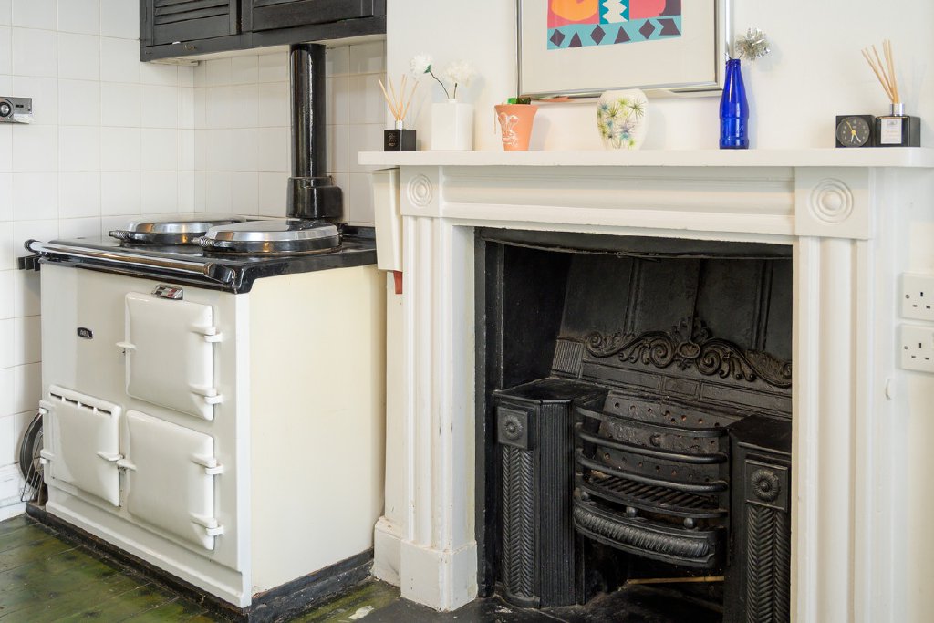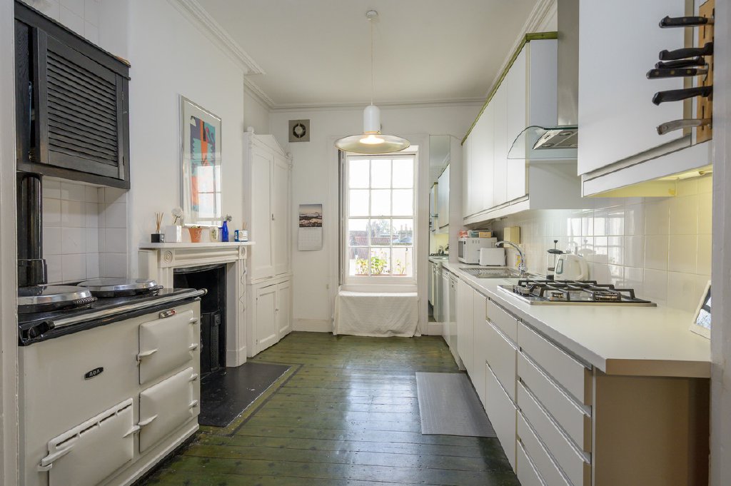 The entrance hallway leads to the dining room with delightful views of the front garden from the two large sash windows with working shutters, more period detail includes stripped floorboards, fireplace and double folding doors which lead to the kitchen. This light filled room offers a great entertaining space with ample wall and floor units, together with a range of integrated appliances to include an Aga and more exquisite period features. Adjacent can be found a large butlers pantry.