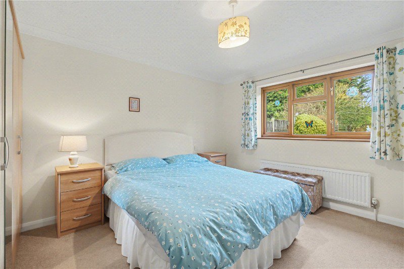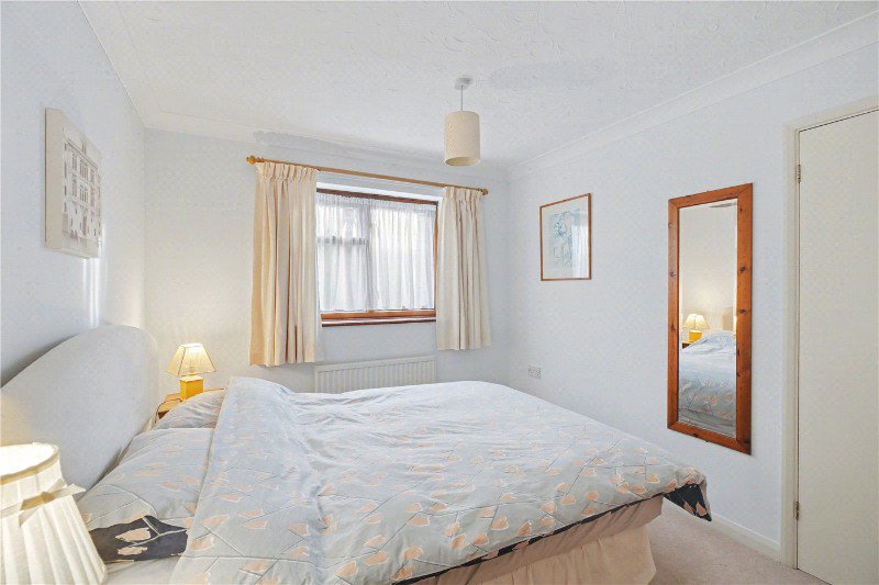 The dual-aspect sitting room is a welcoming space, centred around a feature fireplace and enjoying pleasant views across the front garden. Adjoining this is a study or optional additional bedroom, offering excellent versatility. Also located on the lower level is a double bedroom with built-in wardrobe, together with a family bathroom fitted with a three-piece suite and an airing cupboard.