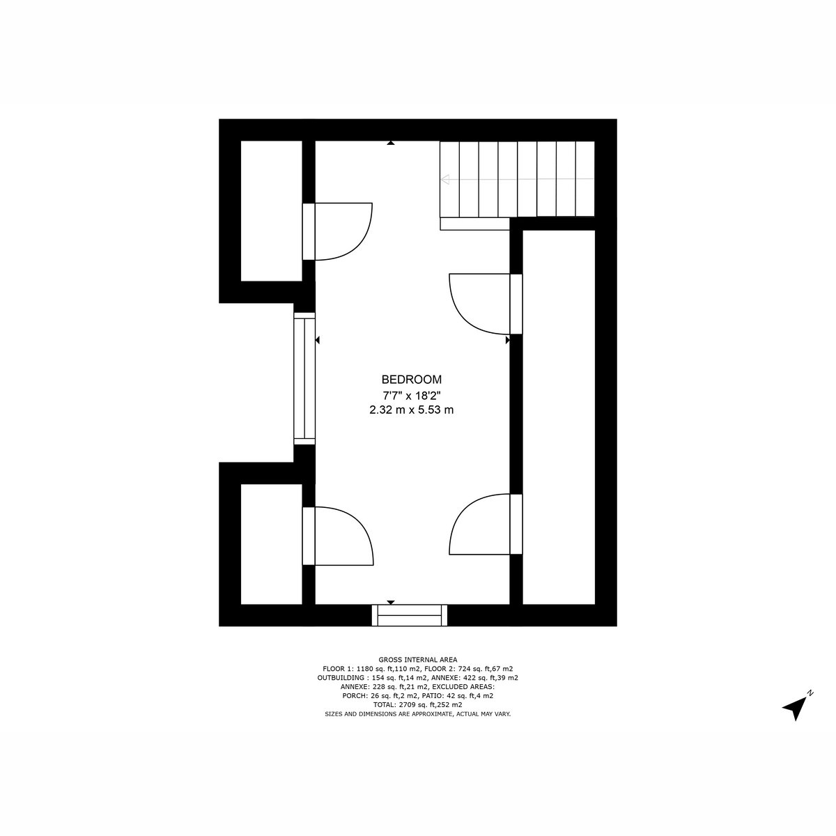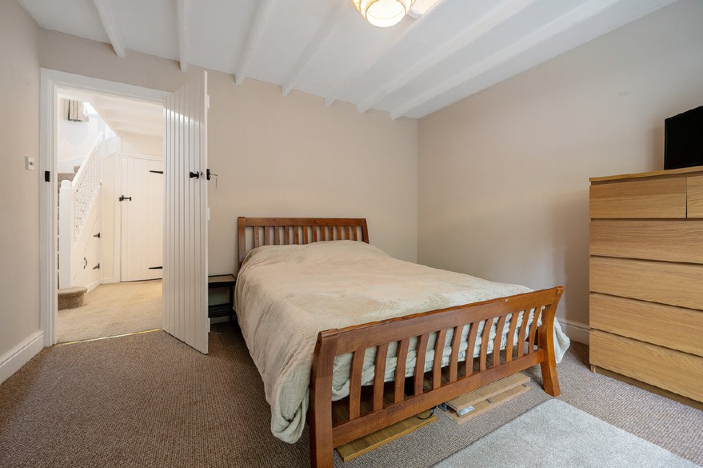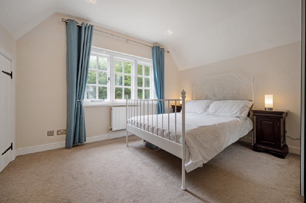 Upstairs are two double bedrooms, a large single, and a family bathroom and a windowed storage room, all enjoying views over the surrounding gardens.