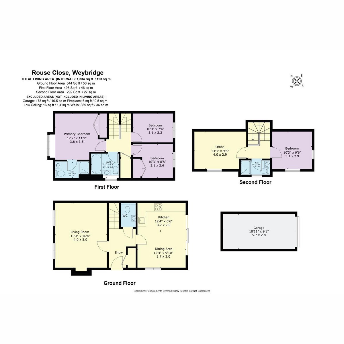 For Sale4 Bedroom Townhouse in Rouse Close, Weybridge, KT13 9DH£900,000