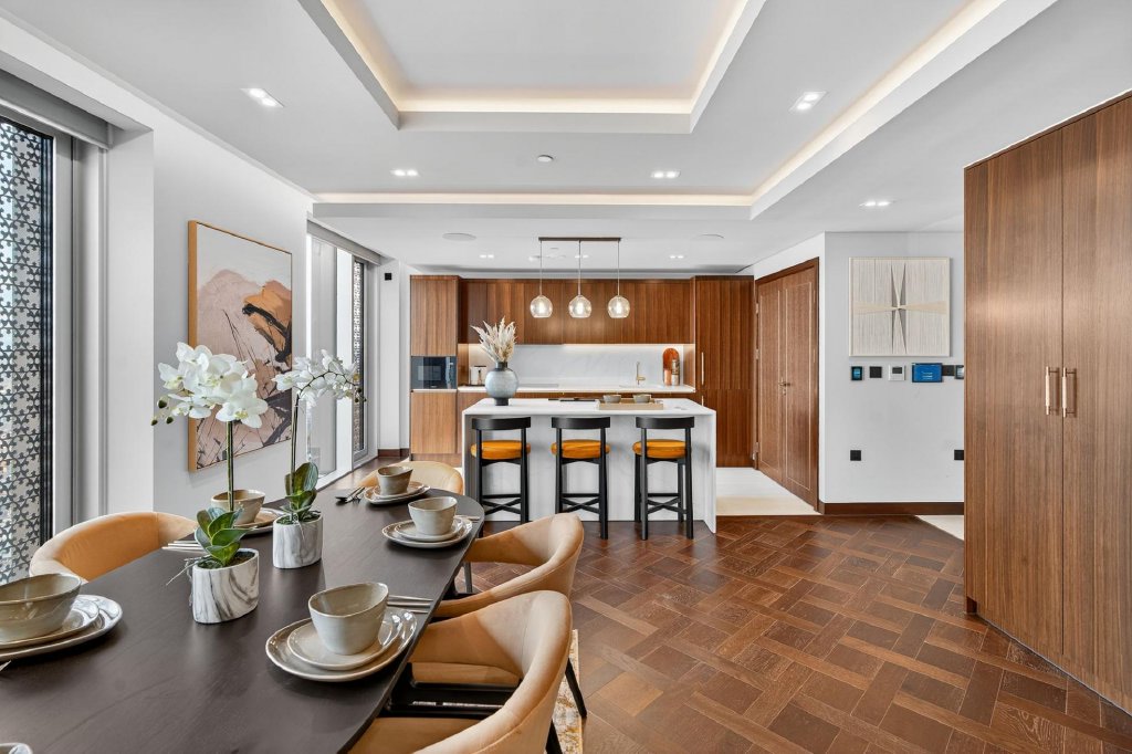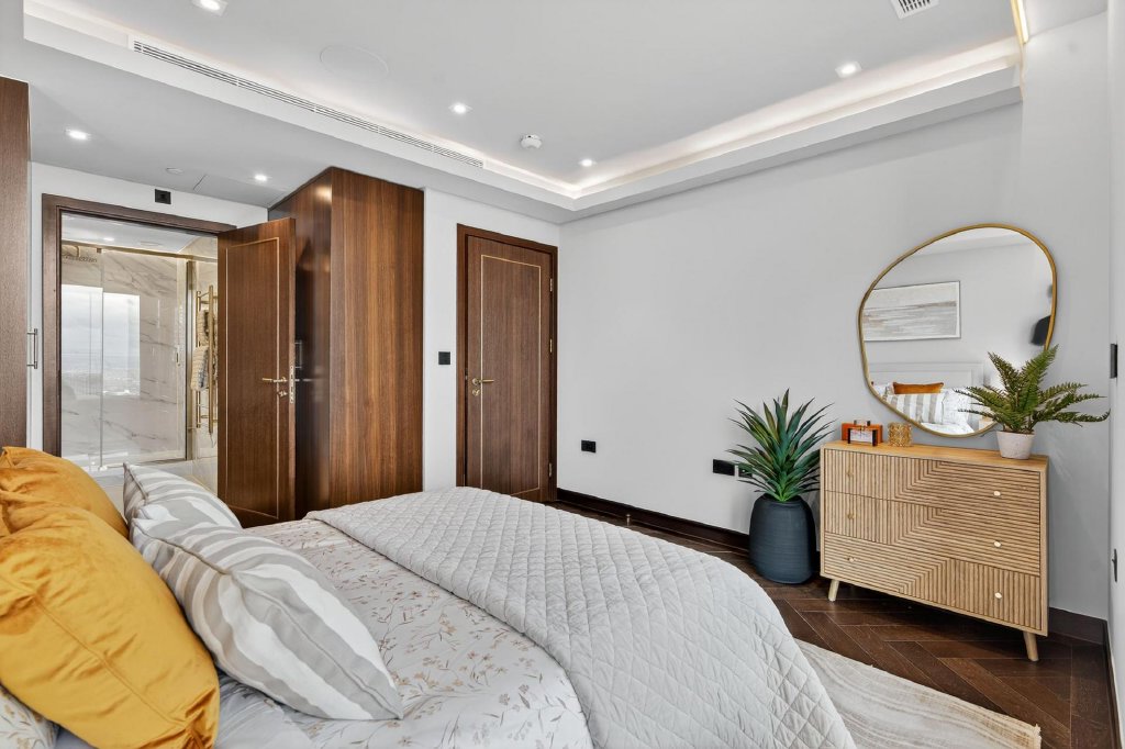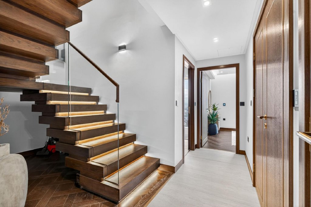 Throughout the penthouse, specification has been carefully considered, including air conditioning, underfloor heating, electronic blinds and integrated audio speakers, ensuring comfort, control and atmosphere at all times. Penthouse owners also benefit from two private parking spaces within a secure residents only car park with fob access, along with an upgraded private lift lobby finished to a higher standard than the rest of the development, creating a refined and discreet arrival experience.