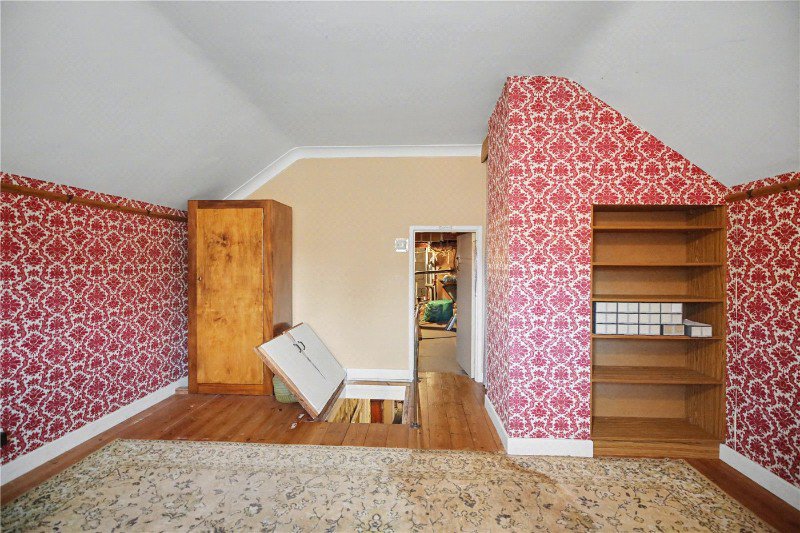 To the first floor is a bespoke loft room, accessed via a fixed open ladder and benefiting from a front-facing window. Further loft space provides additional opportunity for conversion or expansion, enhancing the already impressive potential of the property.