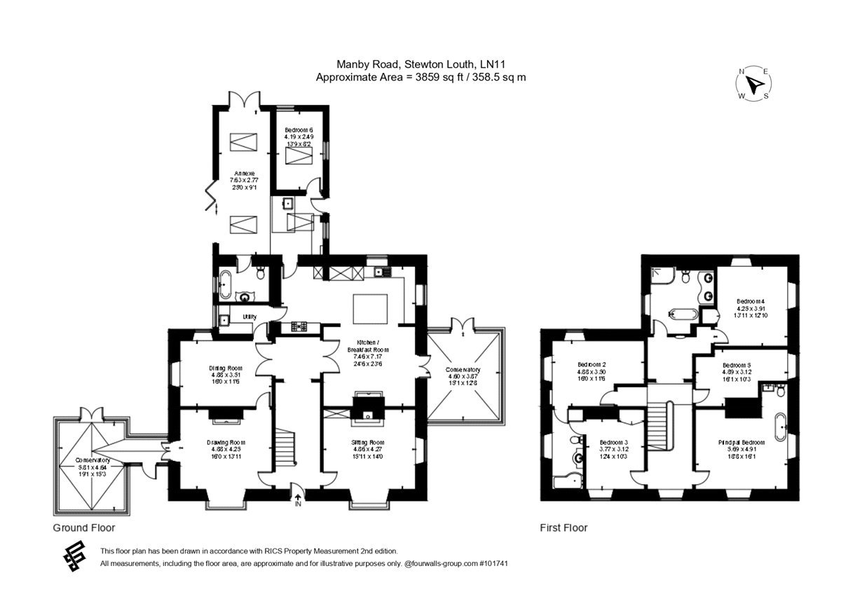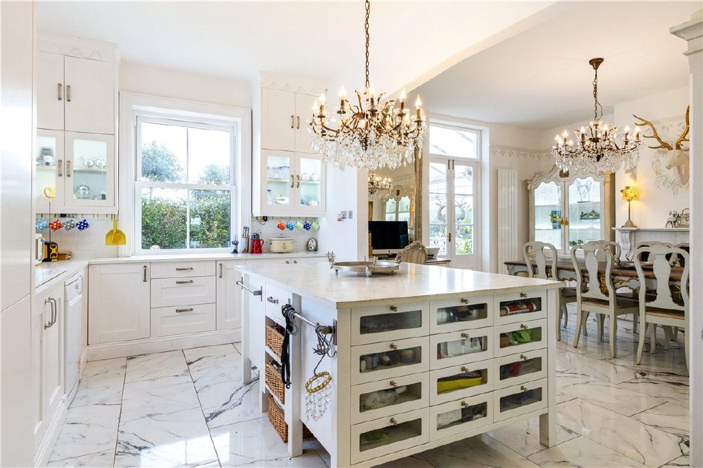 The principal house extends to approximately 3,859 sq ft and provides elegant and well-balanced accommodation arranged over two floors. The ground floor centres around a large open-plan kitchen and dining room, supported by four separate reception spaces including two conservatories, creating excellent flexibility for both family living and entertaining. The layout retains strong period proportions while benefiting from extensive modernisation and good natural light throughout.