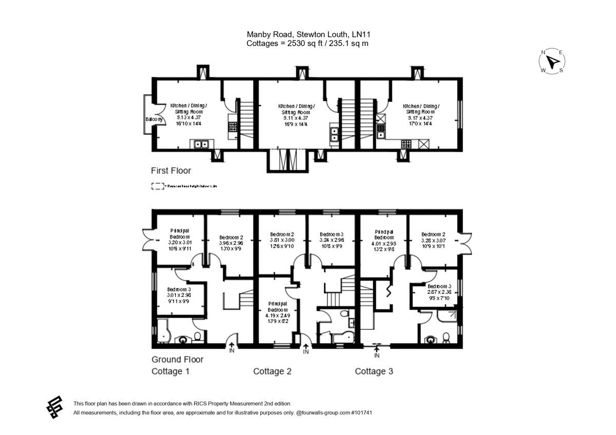 Set slightly apart from the house is a terrace of three purpose-built holiday cottages, extending to approximately 2,530 sq ft in total. Each cottage provides three bedrooms and multiple bathrooms at ground-floor level, with a spacious open-plan kitchen, dining and living area on the first floor, designed to maximise views over the surrounding countryside. The cottages are currently operated as a successful holiday-letting business, and the sale includes fixtures, fittings and inventory to allow continuity of operation if desired.