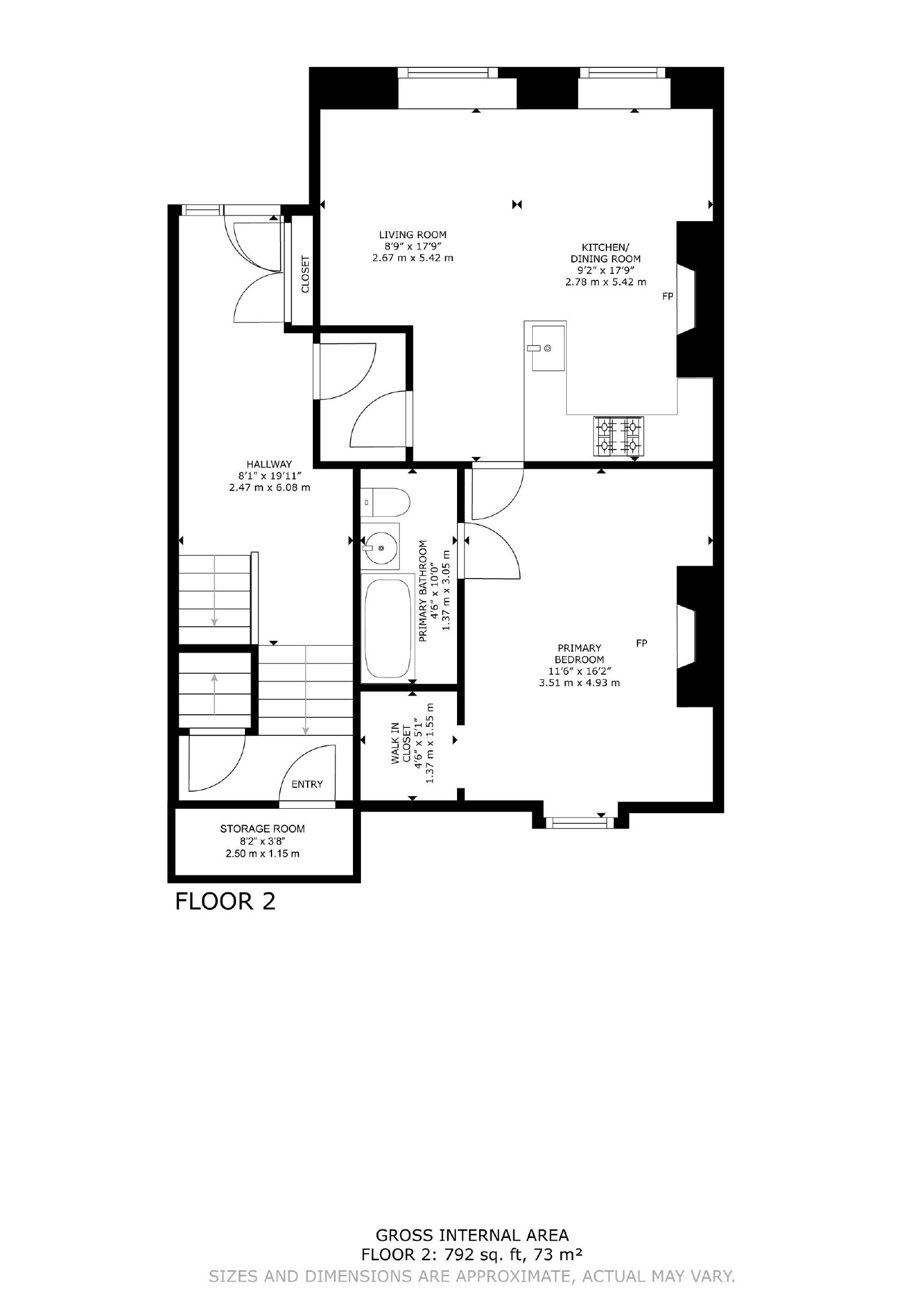 Flat 2 is located on the ground floor and is accessed via a small entrance porch which opens into a stunning open-plan kitchen, dining and living space. This beautiful room benefits from high ceilings and an intricately detailed original ceiling, along with an original fireplace and large sash windows with wooden casings that flood the space with natural light.