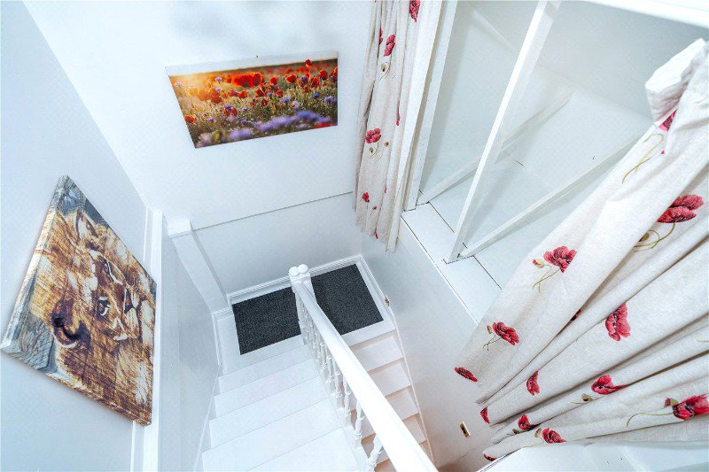 Upstairs, the converted attic offers another bedroom with a Velux window bringing in plenty of natural light. There is also eaves storage and a private en-suite WC.