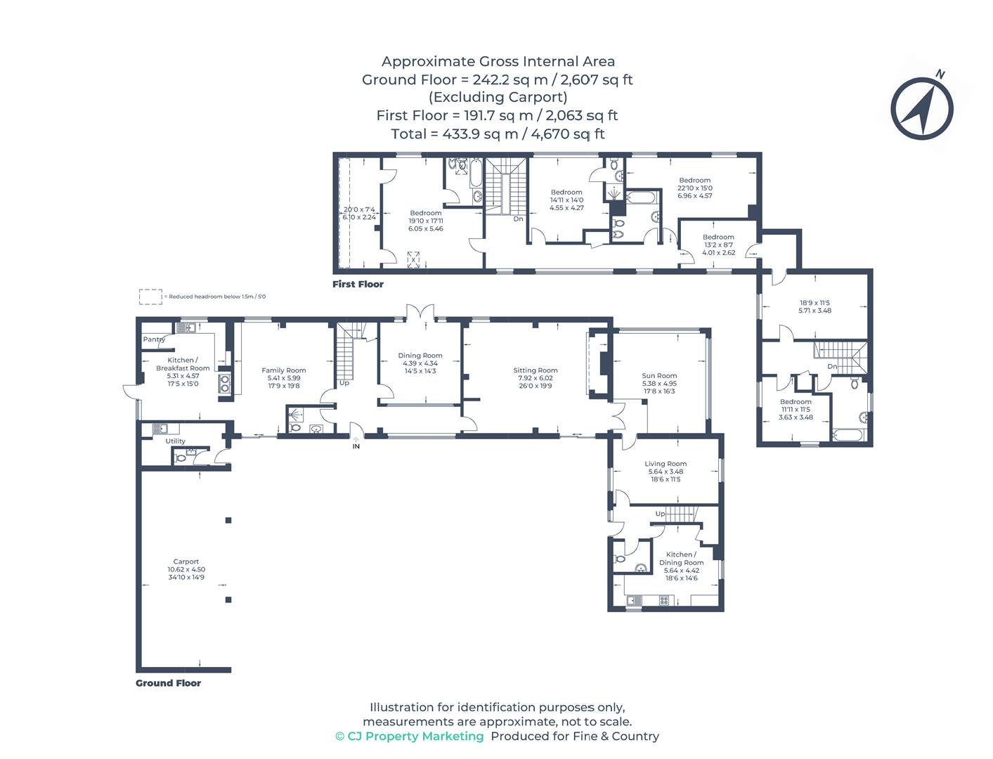 Entrance hall, shower room sitting room, dining room, kitchen/breakfast, utility room, family room & sun room to the ground floor. The first floor offers four double bedrooms, two with en-suites and a family bathroom. To the exterior the property is approached by a private driveway. There is an open fronted double bay garage and substantial driveway parking . The gardens are to all four side of the property and the plot measures approximately 0.7 of an acre.