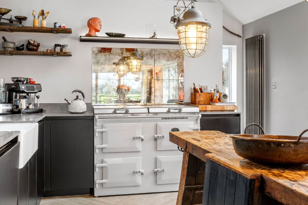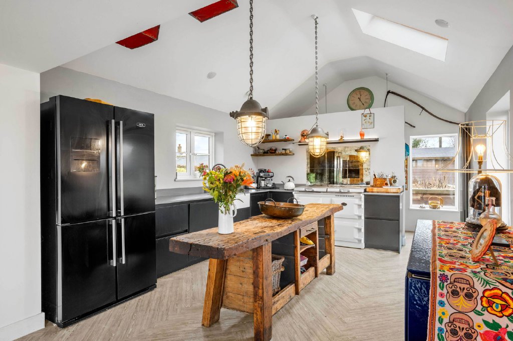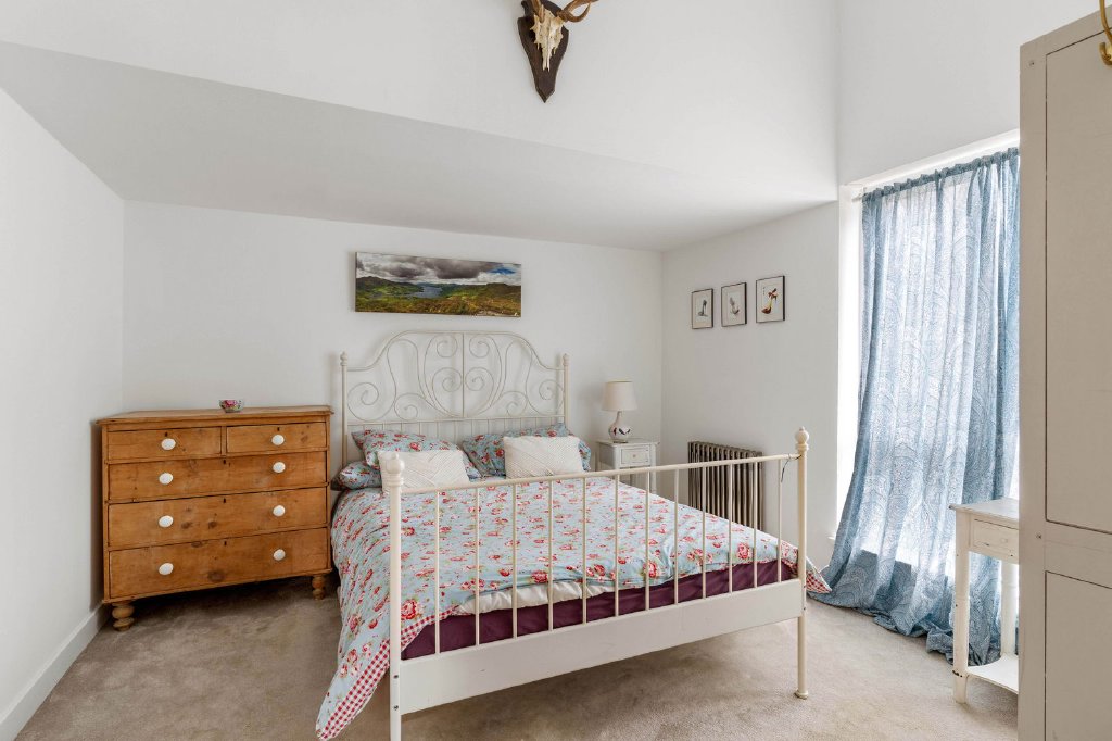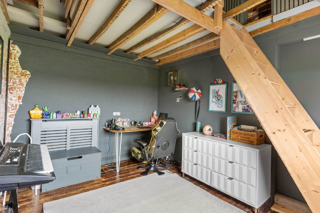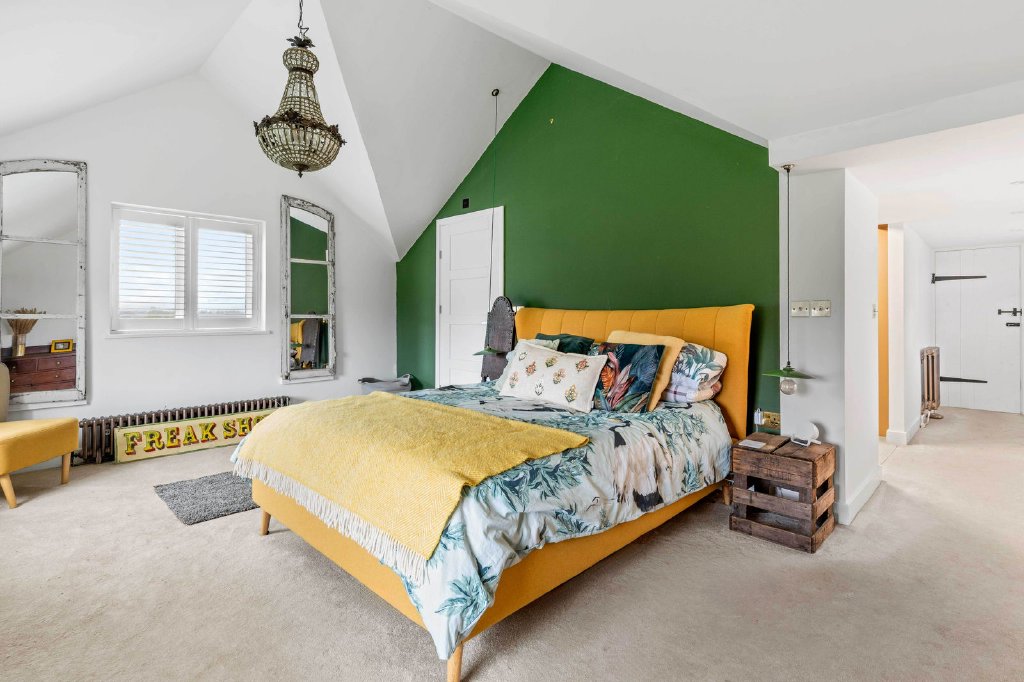 The heart of this home is the large open planned living room with carefully placed large windows and bi folding doors overlooking the garden and countryside. There is plenty of space for dining and entertaining and the kitchen and pantry flow nicely just off the living room. The woodburning stove is a wonderful feature with exposed brick fireplace and really heats the home throughout. On the first floor there are two bedrooms at the top of the landing, one with a mezzanine area where the bed is currently located and allows all the floor space to be utilised. Both bedrooms overlook the countryside, stunning views to wake up too. Just down the corridor there is plenty of built in storage cupboards and a modern family bathroom. There is a doorway leading into the master bedroom with a delightful walk-in wardrobe, fantastic ceiling heights and amazing views from every window. The master ensuite has a free-standing bath just below the window so a bath with a view which is perfectly located, and two vanity sinks and wc.