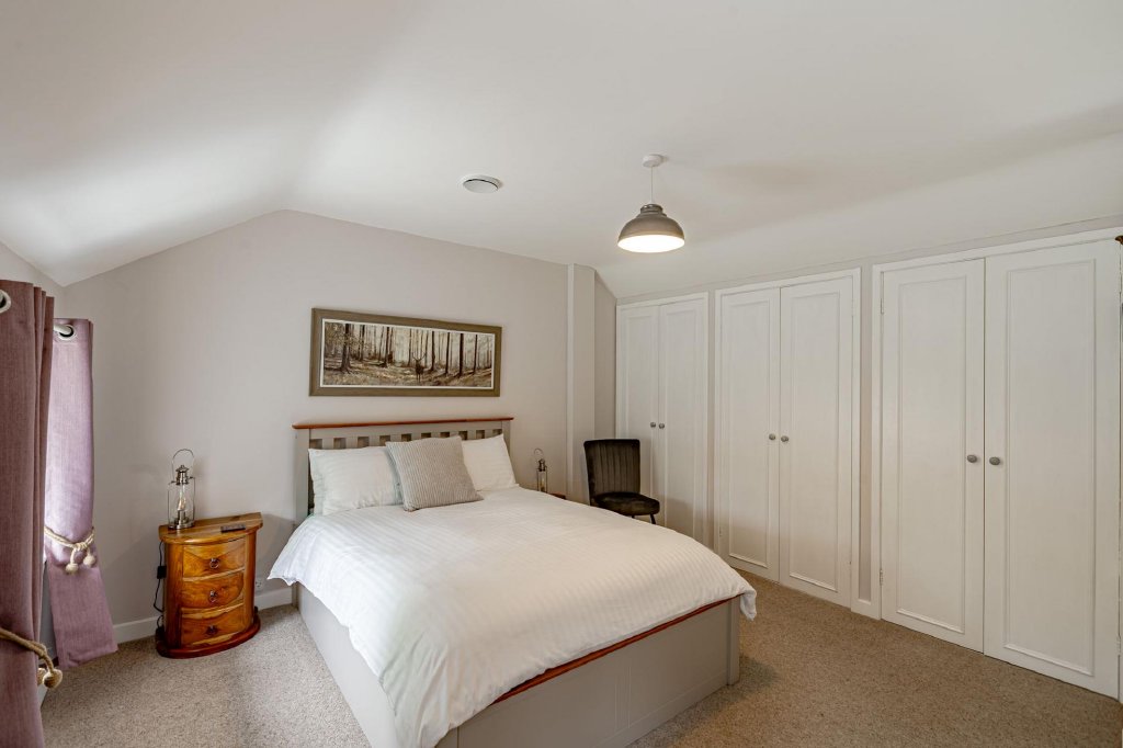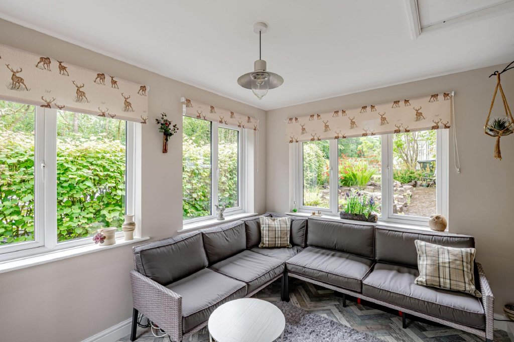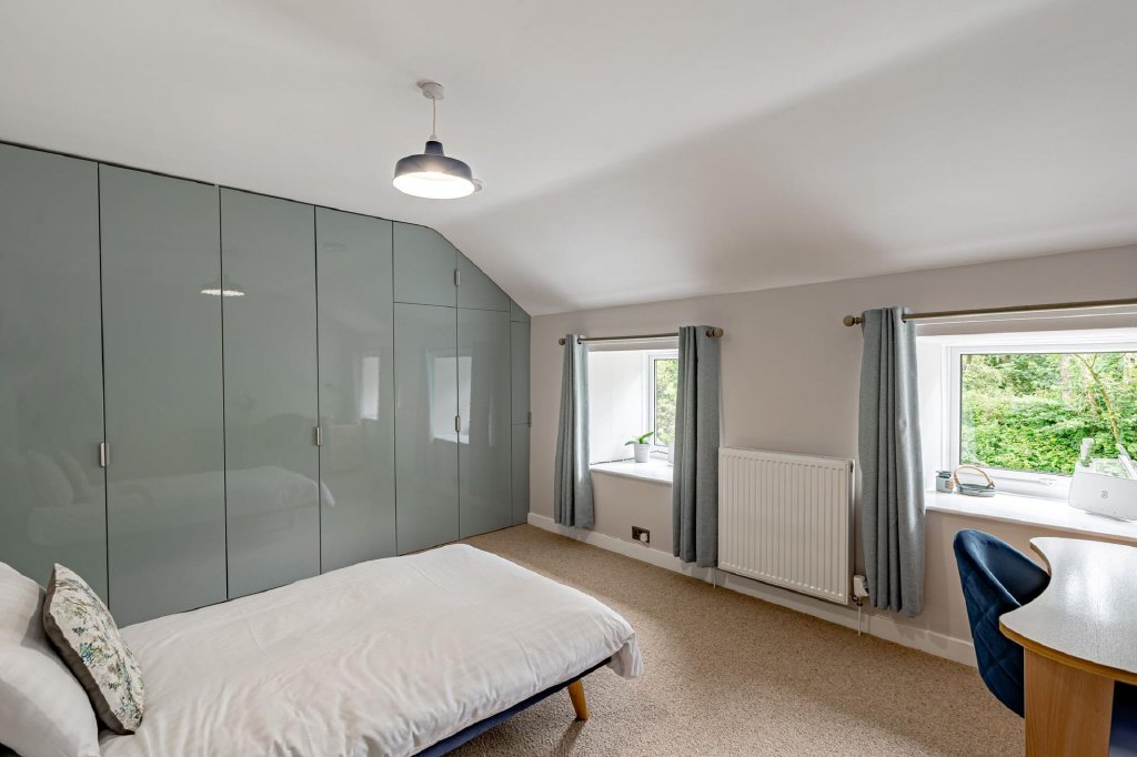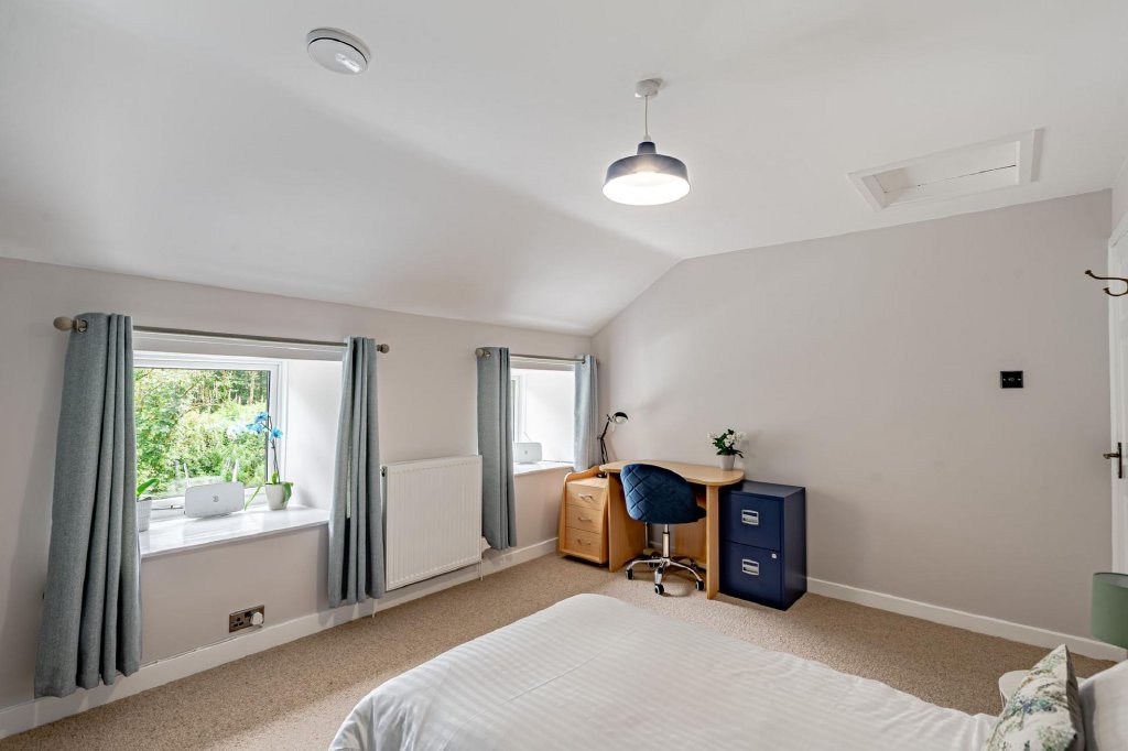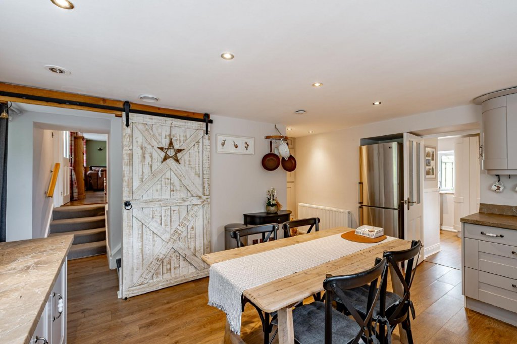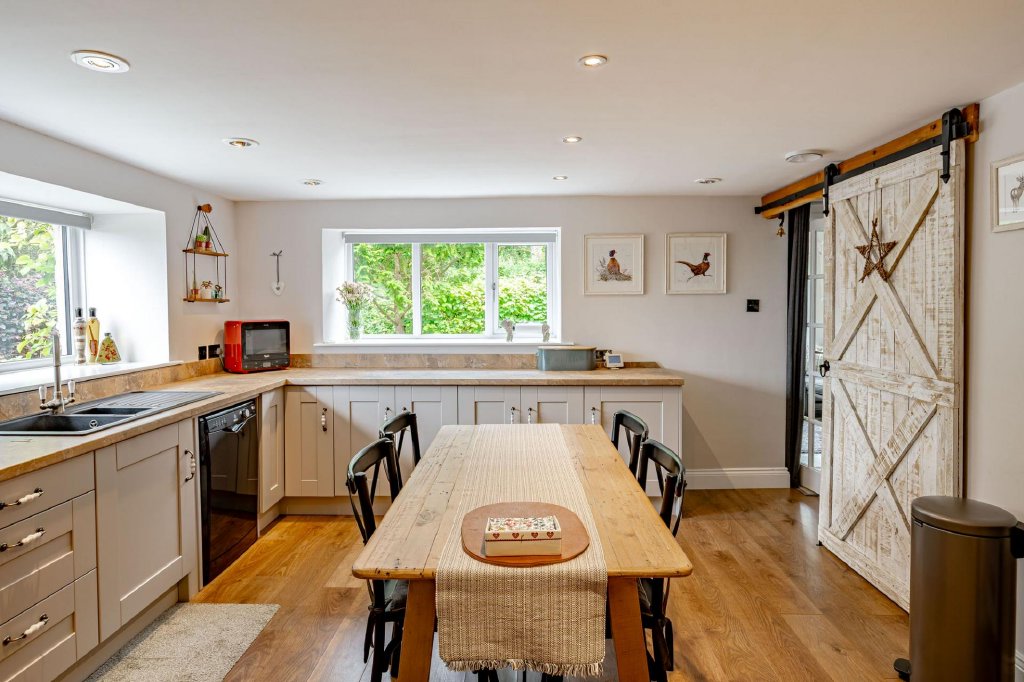 The main living room is sizeable and tasteful. The room features a traditional stone fireplace and log burner, for those cosy winter nights. It is a bright room benefitting from four charming south facing windows, looking out onto the front of the property. This generous space has allowed the current owners to configure the room into three distinct areas; a dining area, office space and a spacious living area.
