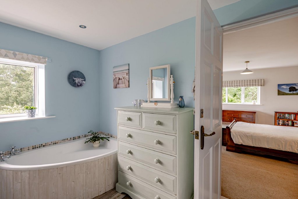 At the Eastern end of the property sits a further extension of the plot which has a separate gated access, gravelled driveway and hardstanding area, overlooking the golf course. All areas benefit from a good level of privacy. This area is prime for development of the Shepherds Hut site, further parking or substantial storage space (all subject to the necessary consents being granted).