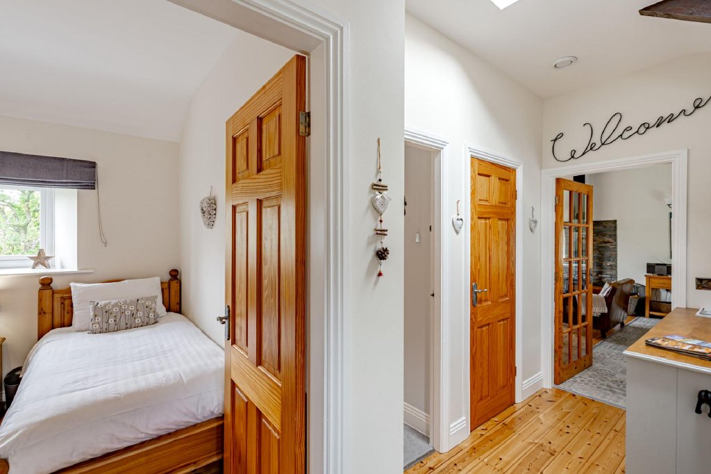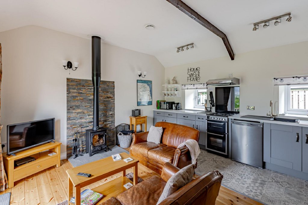 The main property is a semi-detached three bedroomed stone cottage that has benefitted from being extensively updated by the current owners. The property is entered from a gravel drive into the entrance hallway, where there is a generous boot room with ample storage. From here is the well positioned and sizeable utility room which is fitted with a good range of Shaker style wall and base units, there is also a window, sink and space for white goods. In this area is the three year old Navien oil boiler and consumer unit for the property and Stanegate Cottage. Within the utility room is a ground floor WC.
